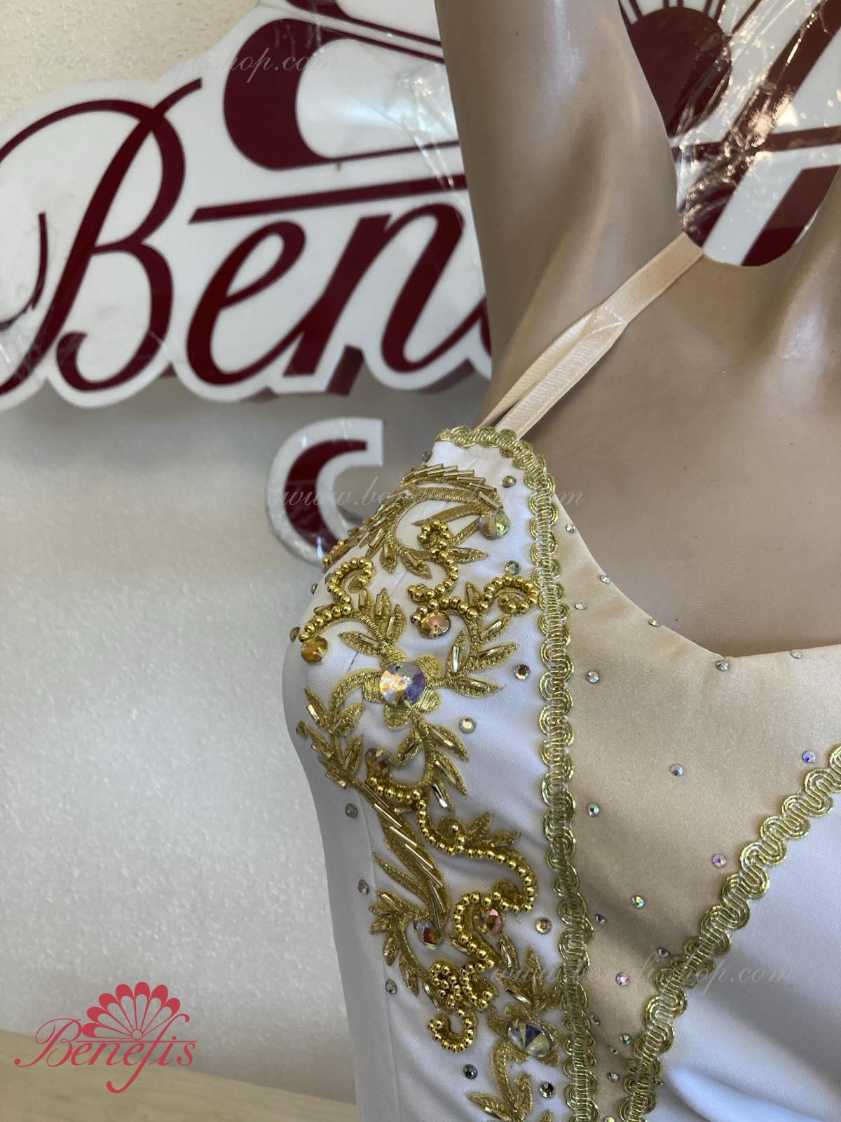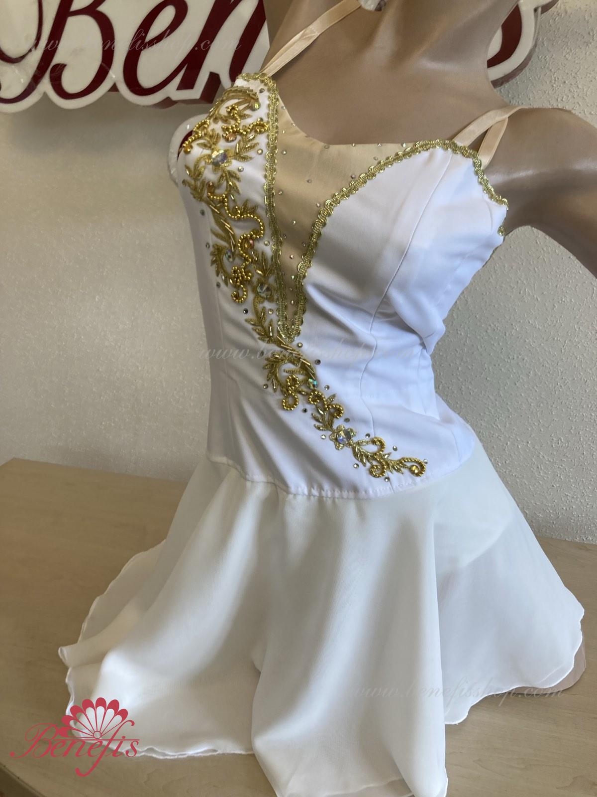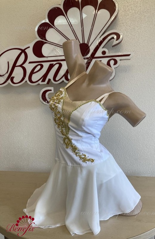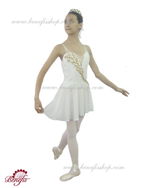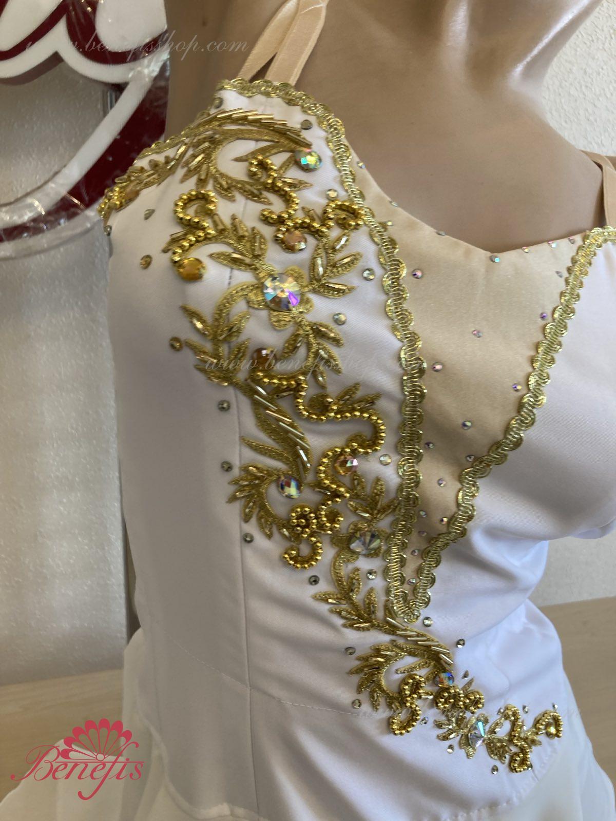 The bodice on flesh-colored straps is made of the semi-stretched dense fabric.