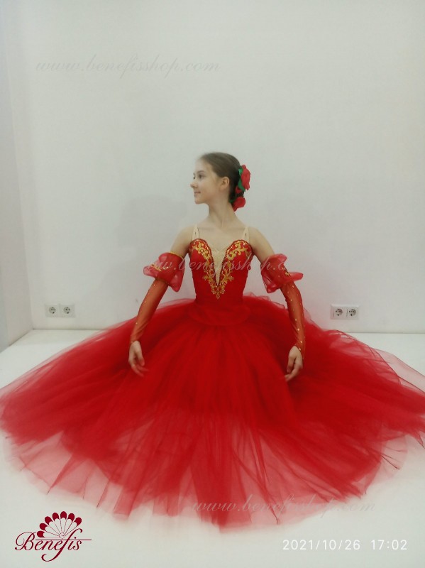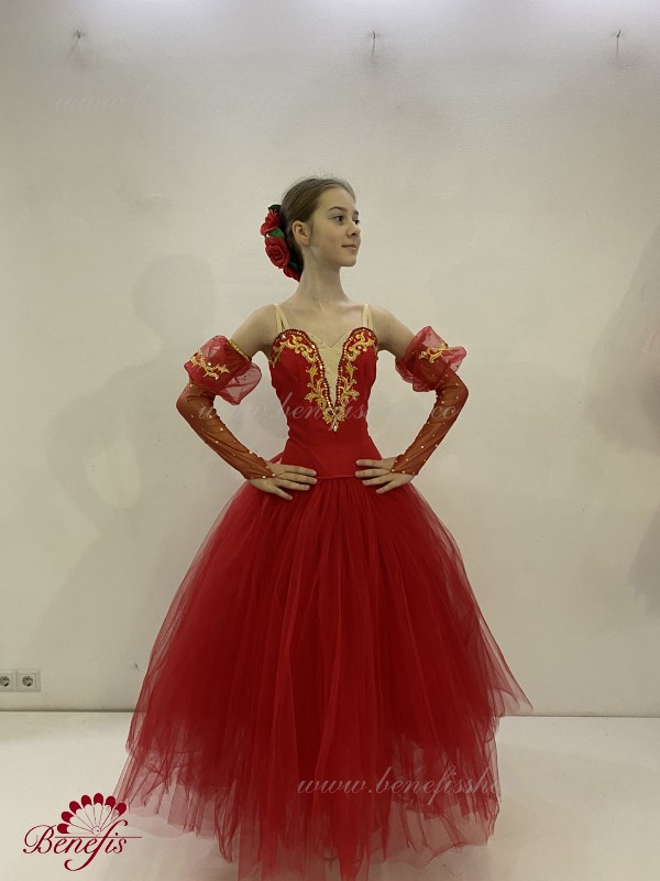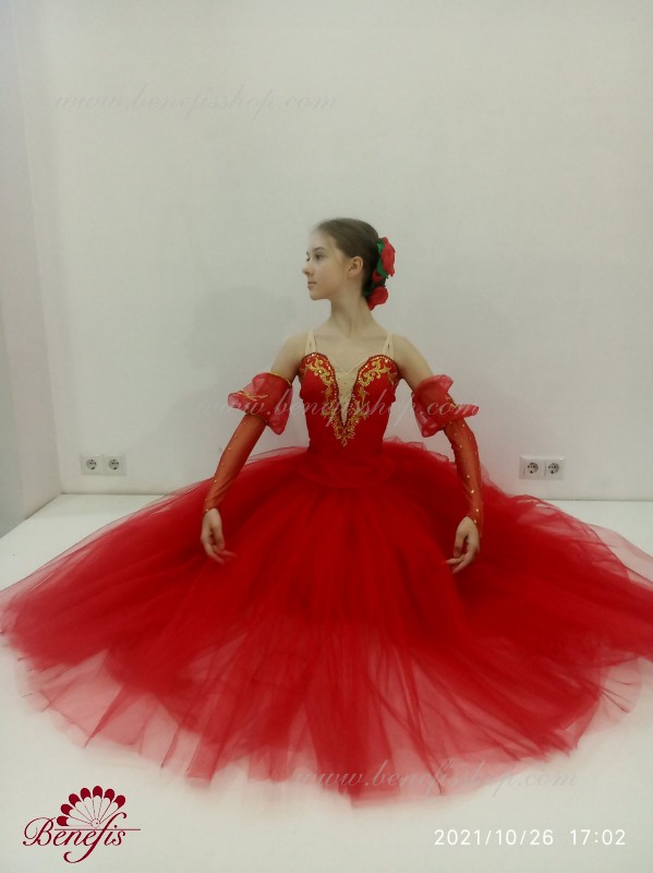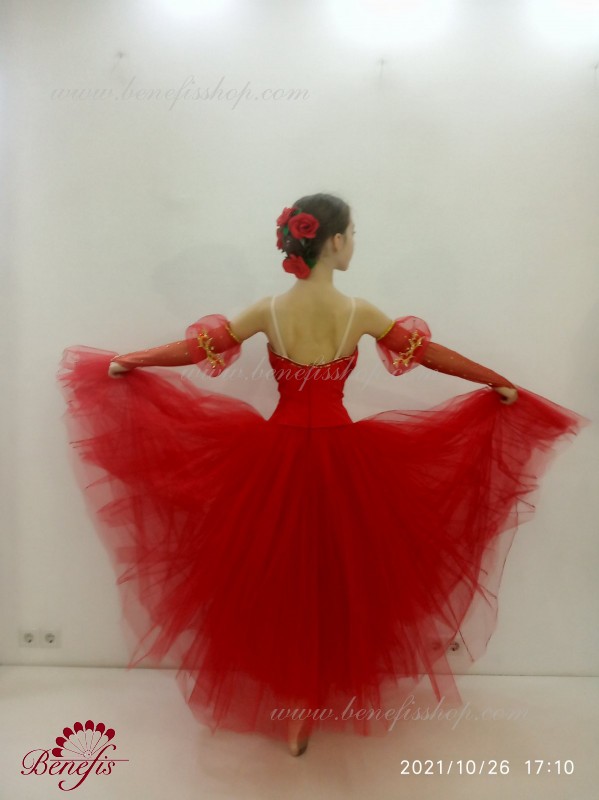 The romantic skirt of the ballet costume is made of 5 layers of soft tulle.