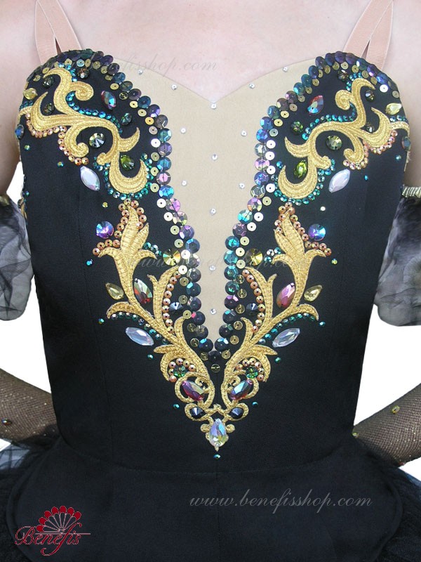 The costume is richly embroidered with stones, sequins, appliqués and crystals.