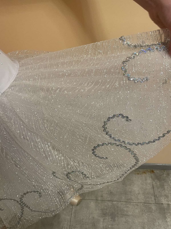 The bodice is fastened with hooks in two rows for convenient adjustment, the inner cord is used to tighten the bodice in the chest area.This airy romantic base pack consists of six layers of soft and hard tulle made from a variety of wedges. All layers are planted on tulle panties. The panties are connected to a tulle yoke (7 cm) attached to an elastic waistband.