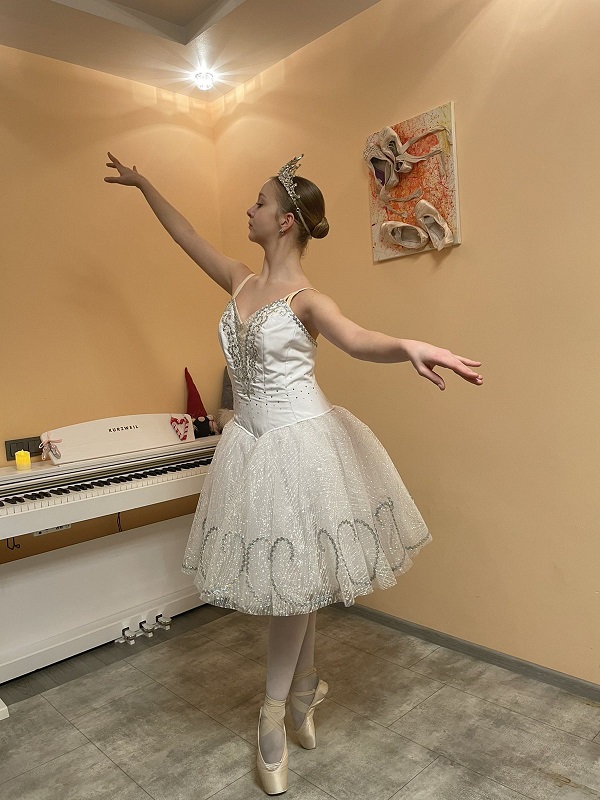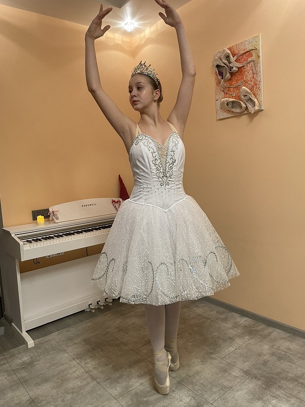 This ballet rehearsal tutu can be performed on both an adult and a child. Decor: braid, sequins.