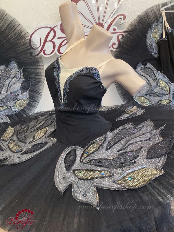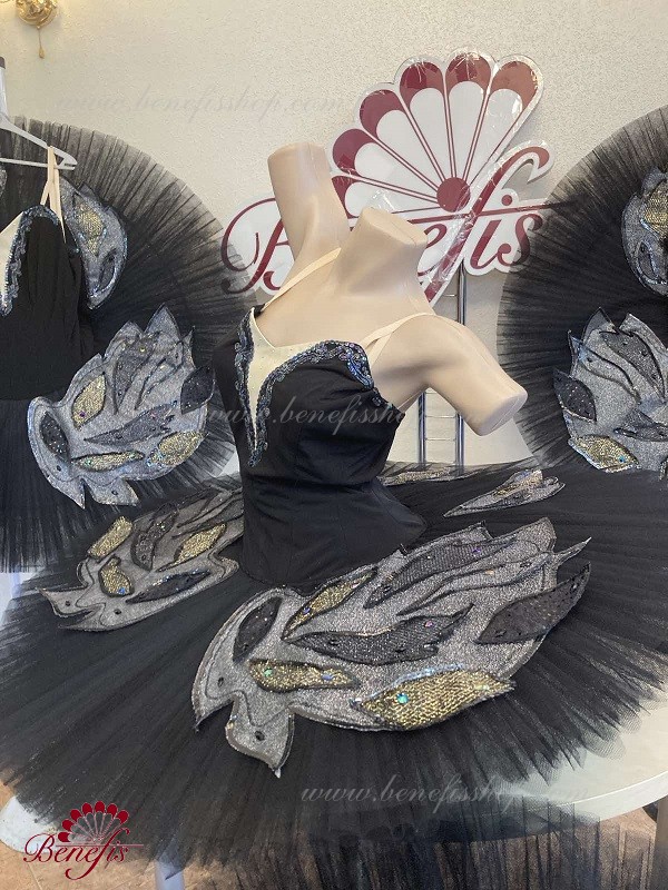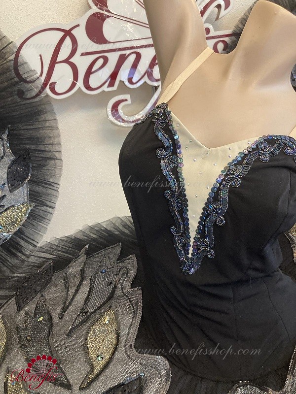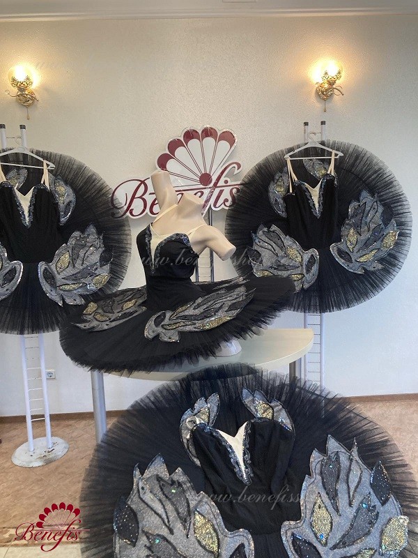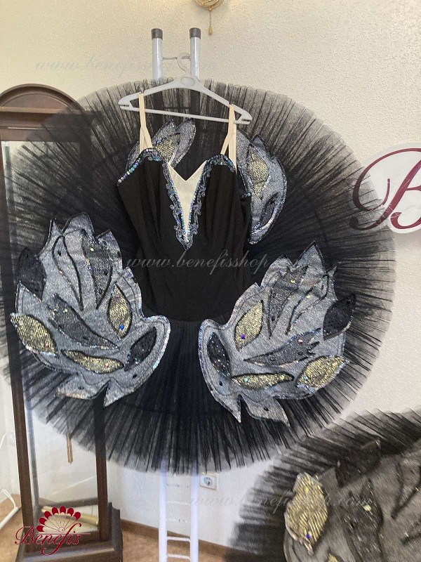 There are two rows of hooks for the comfortable adjustment and an inner cord to tighten the bodice at the chest level.Eight pleated graduated net layers of semi soft tulle- seven long and one short layer, are built on net panties with 10 cm basque attached to an elastic waistband. Two crinoline resilient hoops is inserted in the middle layer with two extra short ruffles on the edge. The length of the top layer is 36-38 cm, with each successive layer being 4 cm shorter than the previous layer. Six large hook and eyes are attached at the back to fasten the skirt.The base is decorated with wings, the bodice with decorative braid, sequins and rhinestones.The terms of producing of the items (since the day of receiving the money on our account): 1. Ready-made kinds of production (leotards, tights, skirts) – from several days to 3 weeks, depending on the volume of order. 2. Stage costumes – during 4-6 weeks. 3. Special orders – during 4-6 weeks. 4. The claims are considered during 2 weeks since day of receiving the order by customer. 5. We guarantee express delivery on the indicated address.