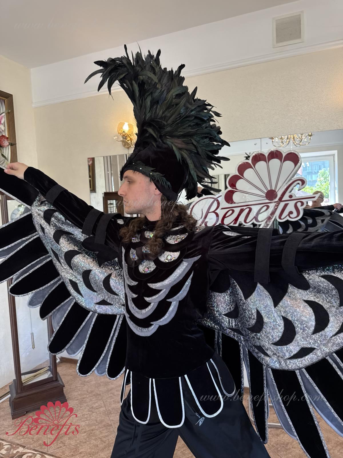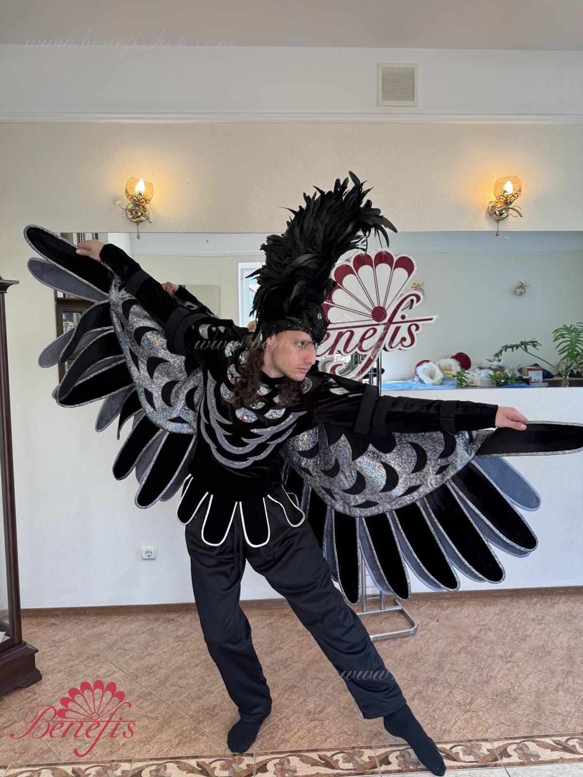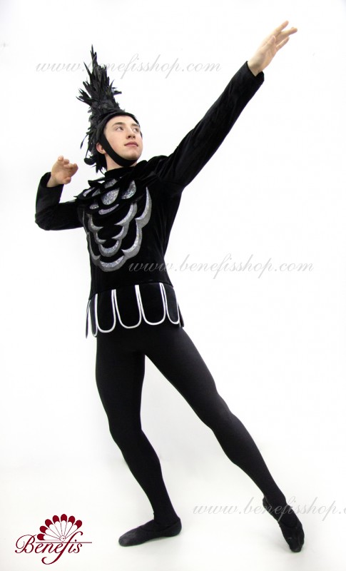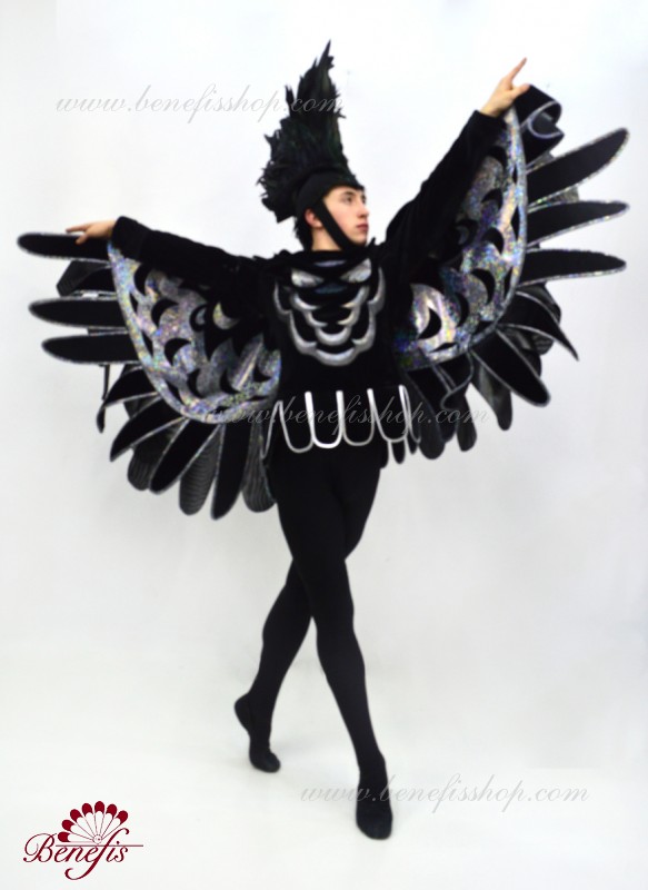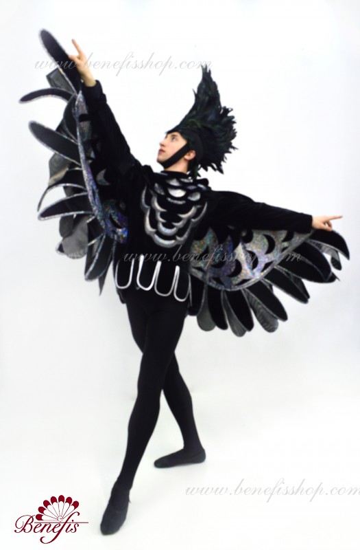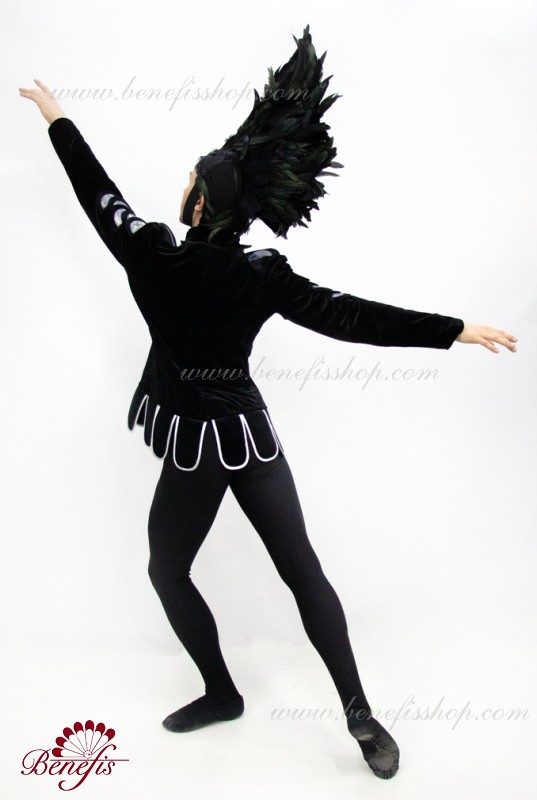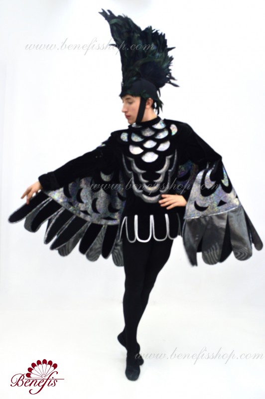Details: tunic with removable wings, headpiece. This professional ballet costume is made of semi-elastic dense fabric. The imitated feathers on the tunic help the artist to take on the image of a bird. The headpiece is made of natural feathers. The costume can be made in any color at the customer's choice.