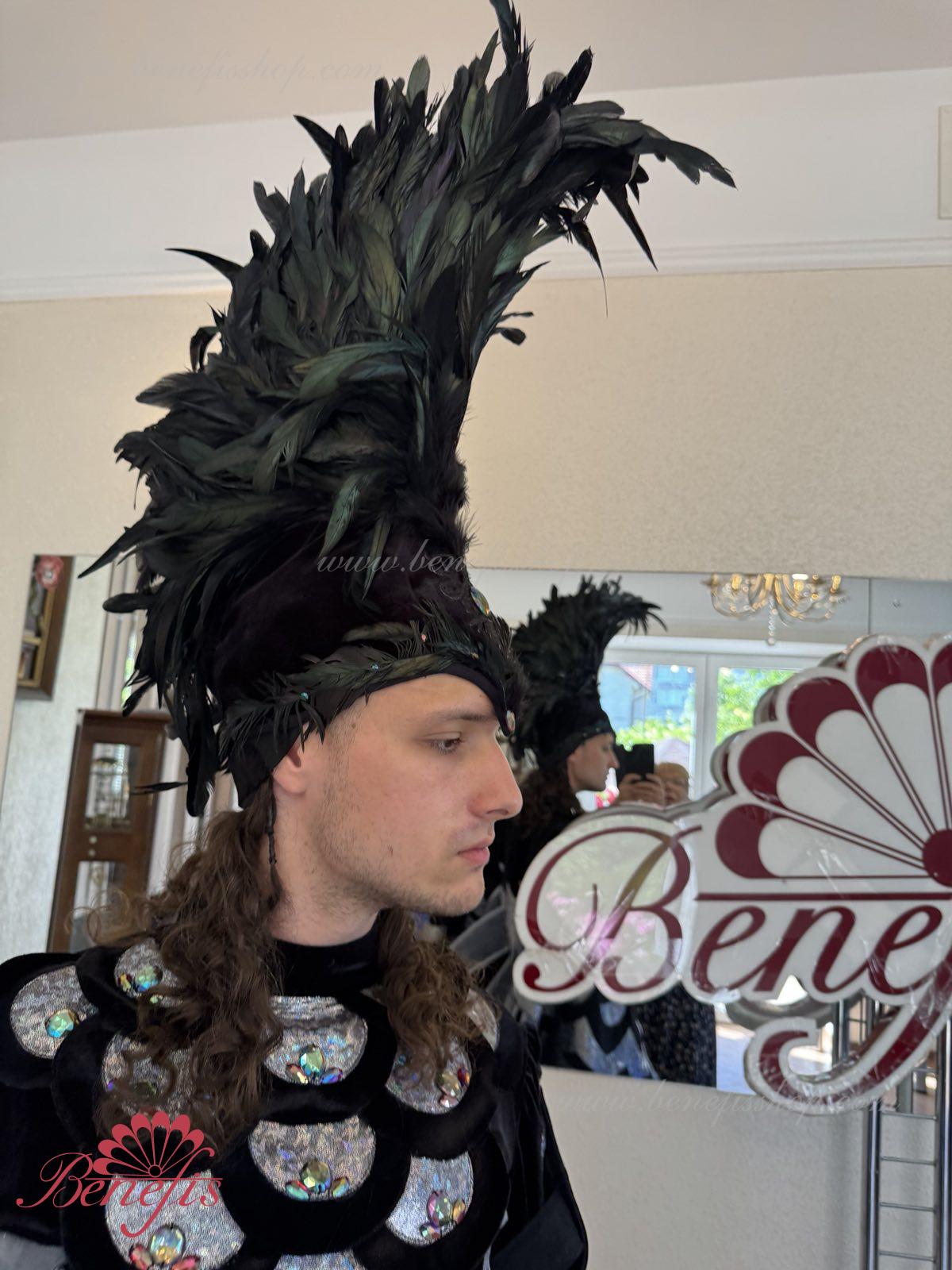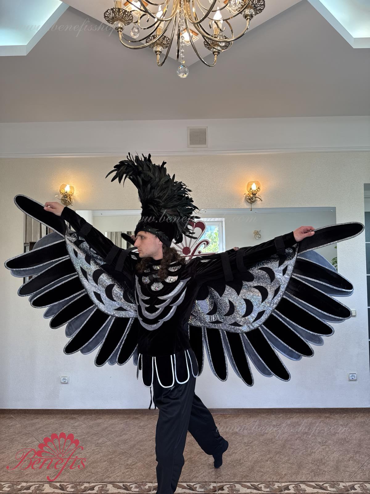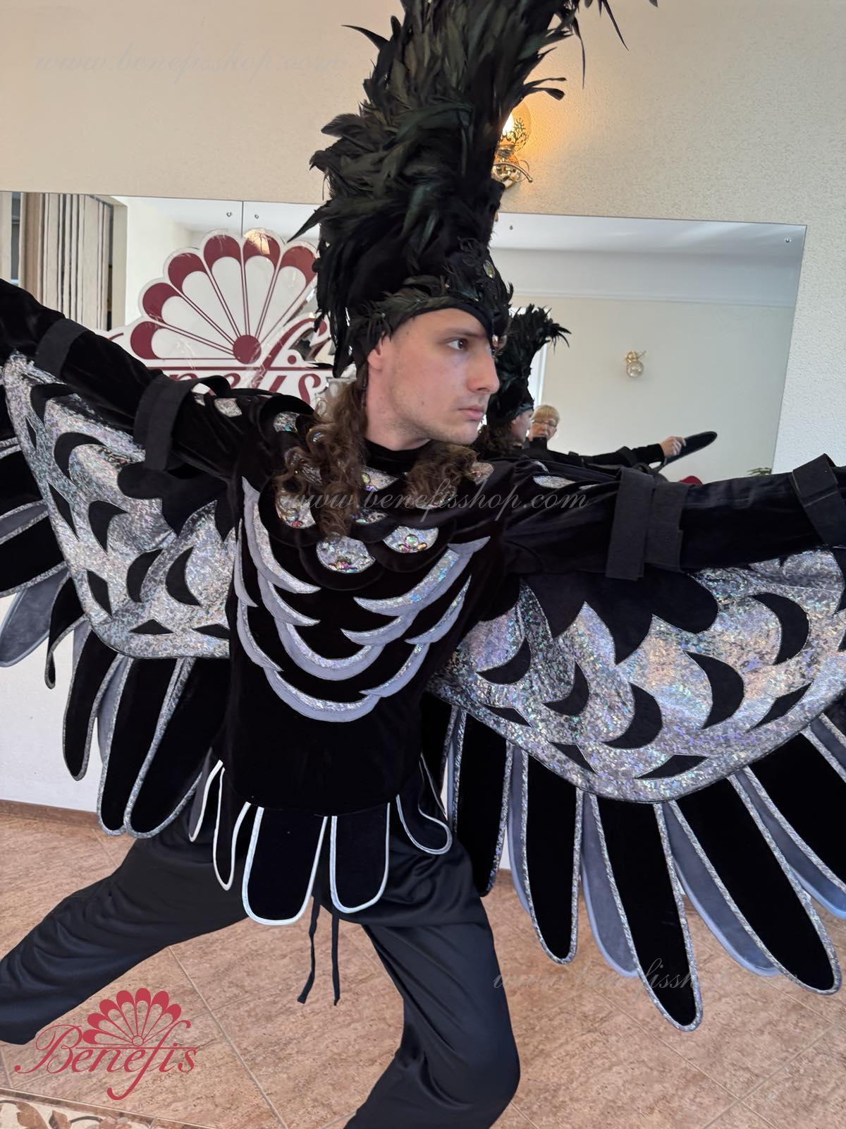 Details: tunic with removable wings, headpiece. This professional ballet costume is made of semi-elastic dense fabric. The imitated feathers on the tunic help the artist to take on the image of a bird. The headpiece is made of natural feathers. The costume can be made in any color at the customer's choice.