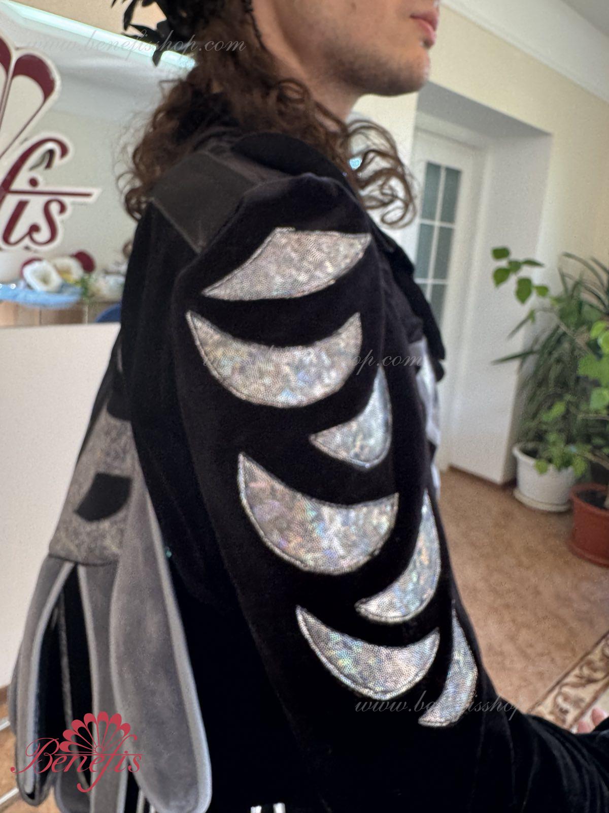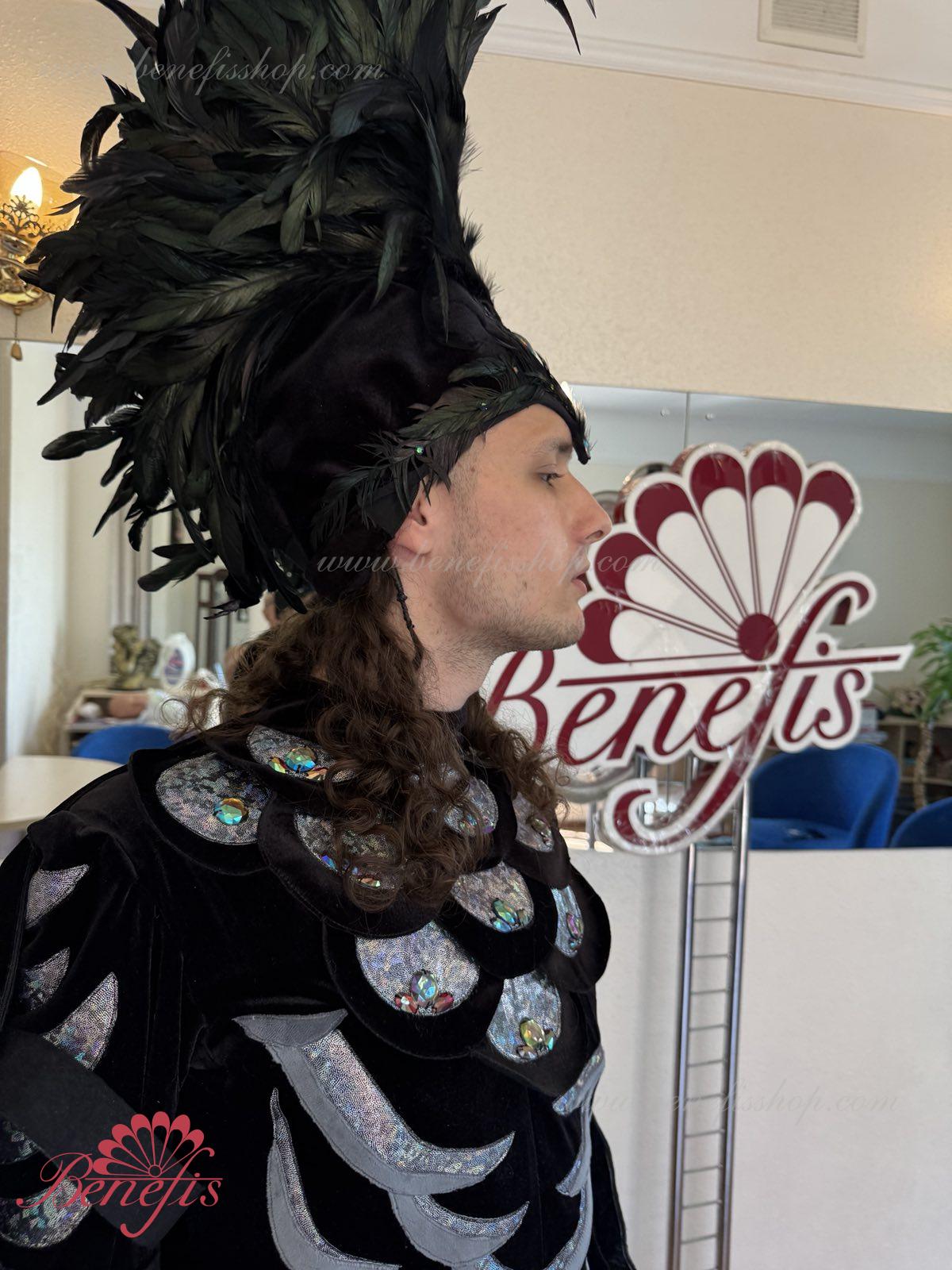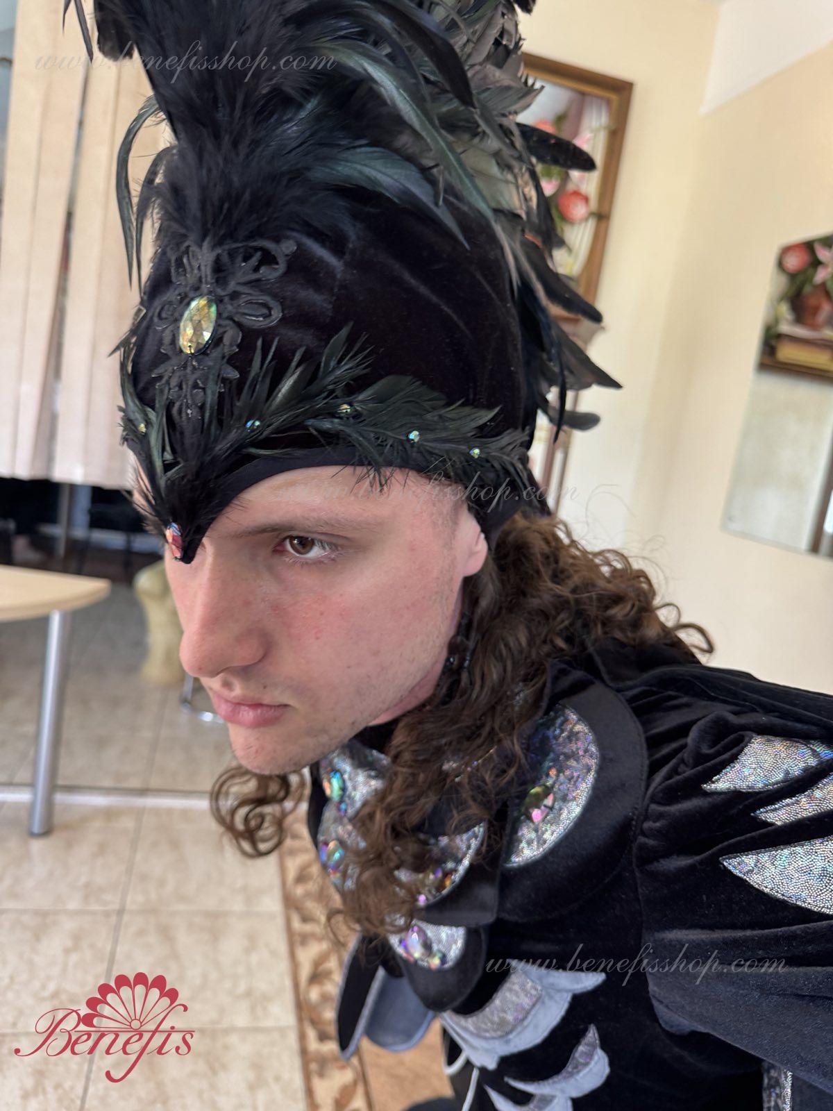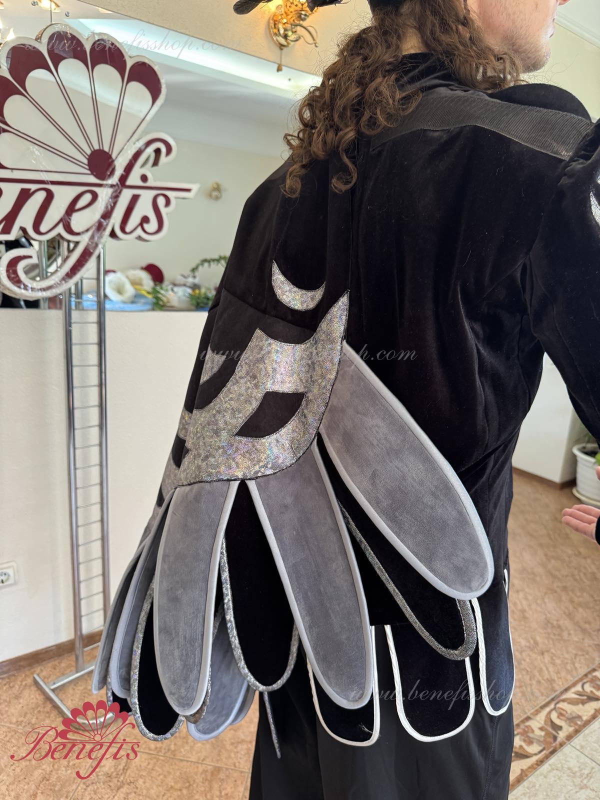 Details: tunic with removable wings, headpiece. This professional ballet costume is made of semi-elastic dense fabric. The imitated feathers on the tunic help the artist to take on the image of a bird. The headpiece is made of natural feathers. The costume can be made in any color at the customer's choice.