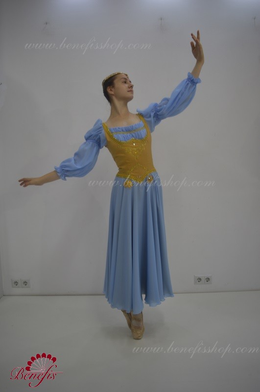 Details:costume, sleeves. Bodice with shoulder seams. Two chiffon skirts. Supplex briefs. Chiffon sleeves.