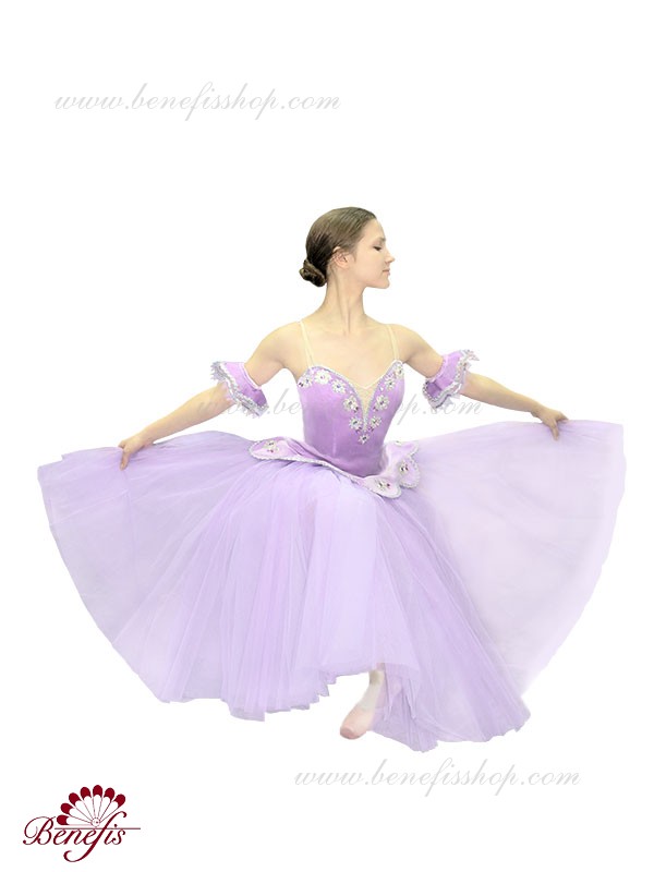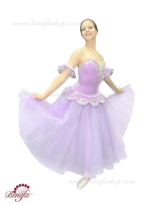 Details: costume, arm ruffles. It is a professional stage costume, which is made on the basis of the professional basic romantic tutu #T0003 (see section “Basic tutus”) and is made of tulle of six layers.