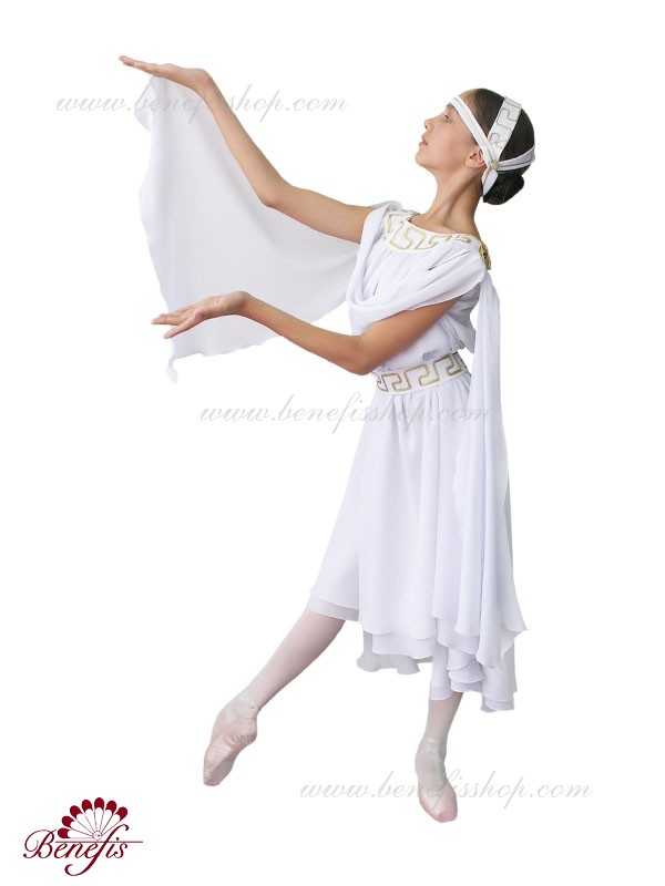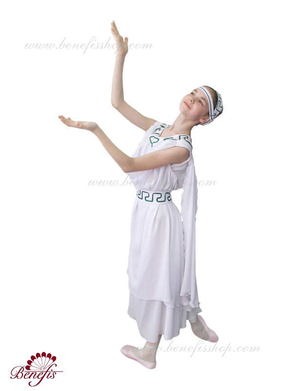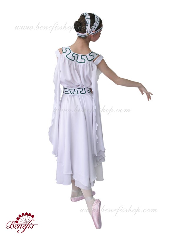 The pattern in Greek style is made of braid which is sewn to the head piece, belt and the basque of the bodice.