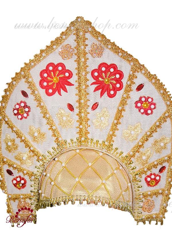 The large bow of crepe-chiffon which is tied up on the back, gives a special festive appearance to the kokoshnik.