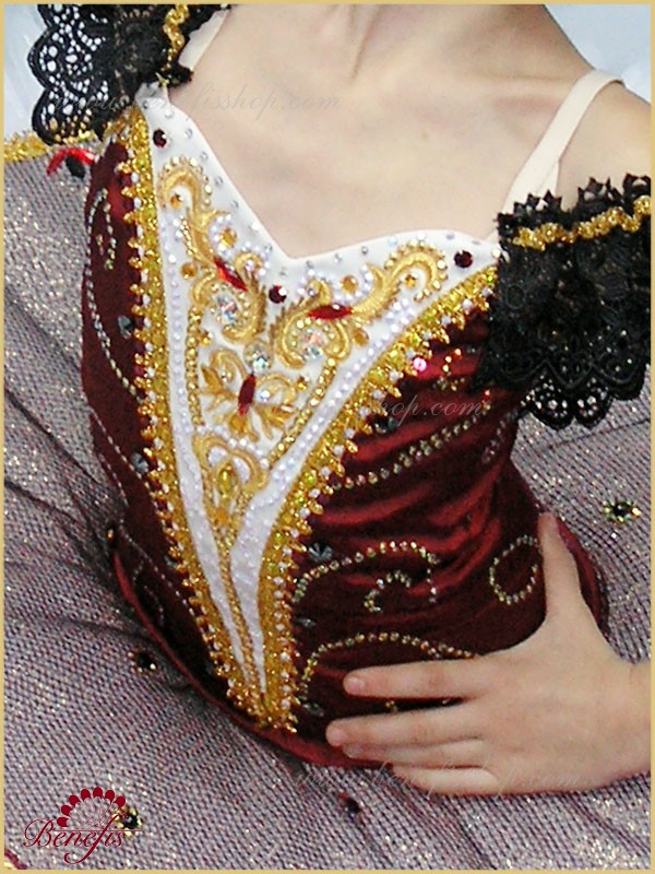 This ballet costume can be used as a soloist costume in different ballet performances, such as ‘Don Quijote’, ‘Laurencia’, ‘Paquita’, ‘Esmeralda’.