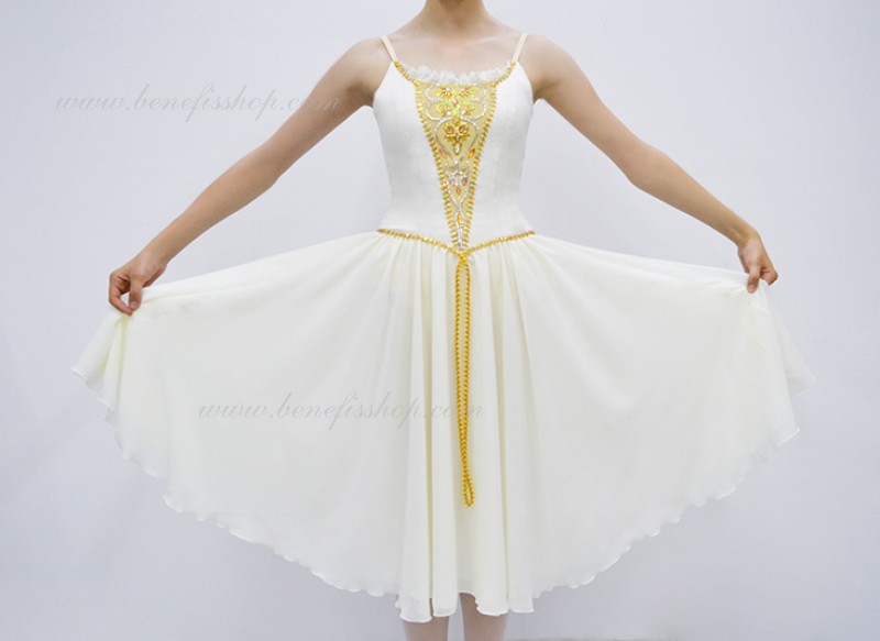 Professional stage costume made on the basis of the basic bodice T0009. The skirt is made of 2 layers of chiffon and briefs of supplex. The costume is decorated with applications, braid, sparkles, bugles and rhinestones.