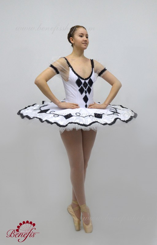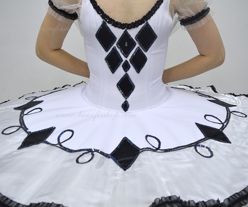 Stage costume is made on the basis of basic bodice T0001B. The bodice is made of semi-stretch fabric. Sleeves flashlights is made from tulle. The bodice has two rows of hooks on the back. The costume is decorated with rhombuses, sparkling braid and lace.