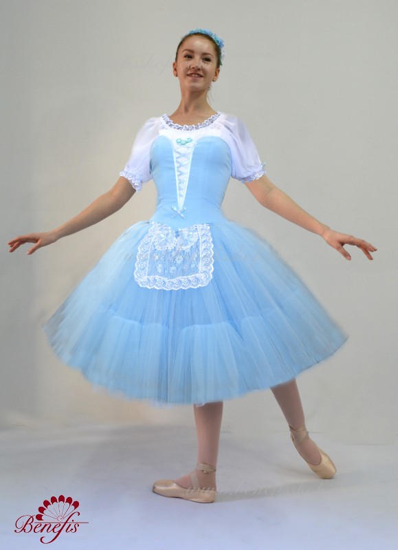 The costume is sewn in a peasant style, it has a small apron in front side, made of guipure.