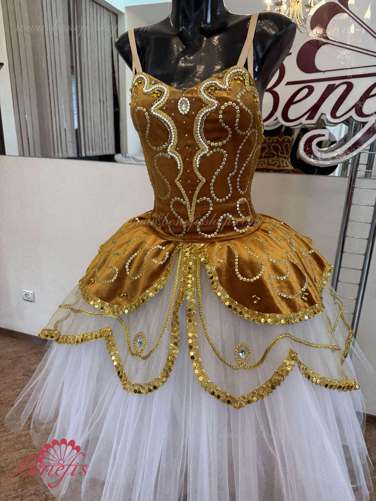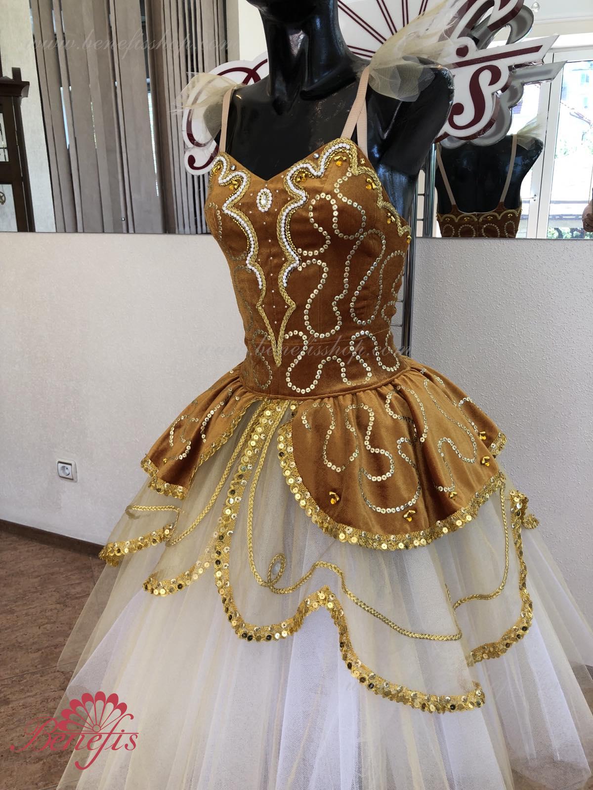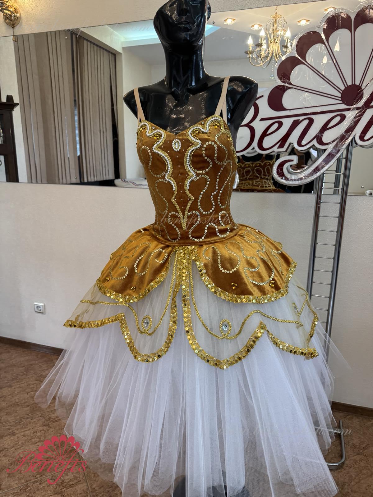 The costume perfectly suits for the Pas de Trois variations from the “Swan Lake” ballet, but it can be also used as the costume for the Queen and Cinderella roles.