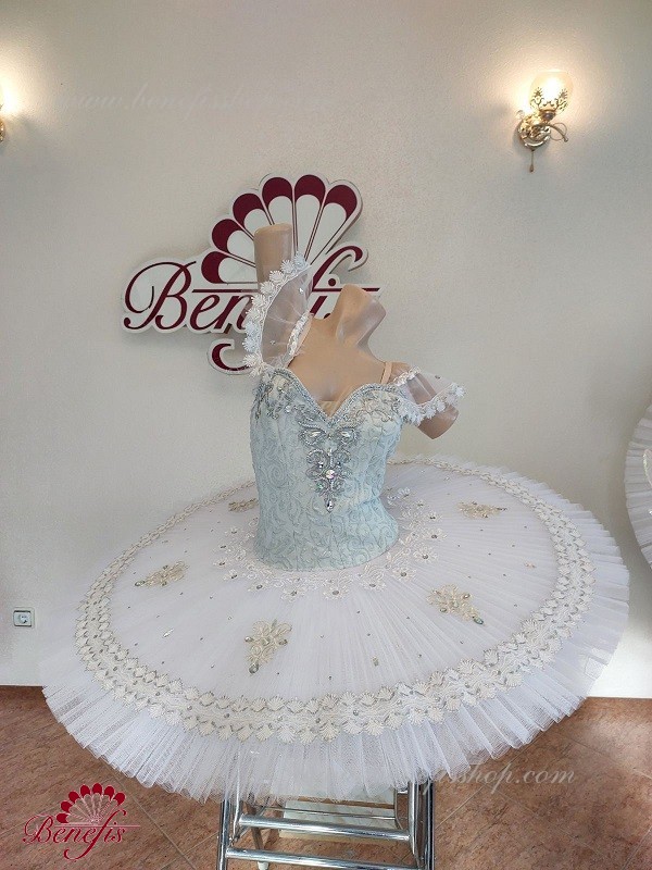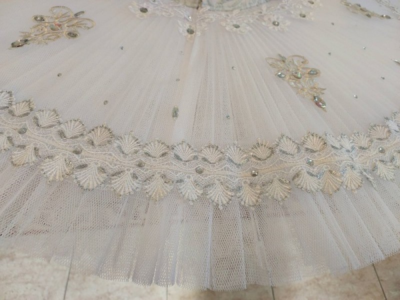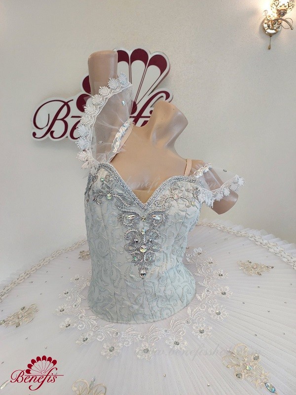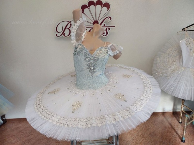 Stage costume is made on the basis of bodice T0009 and tutu T0001E. The costume is decorated with rhinestones, appliqués, bugles, braid, lace sewing.