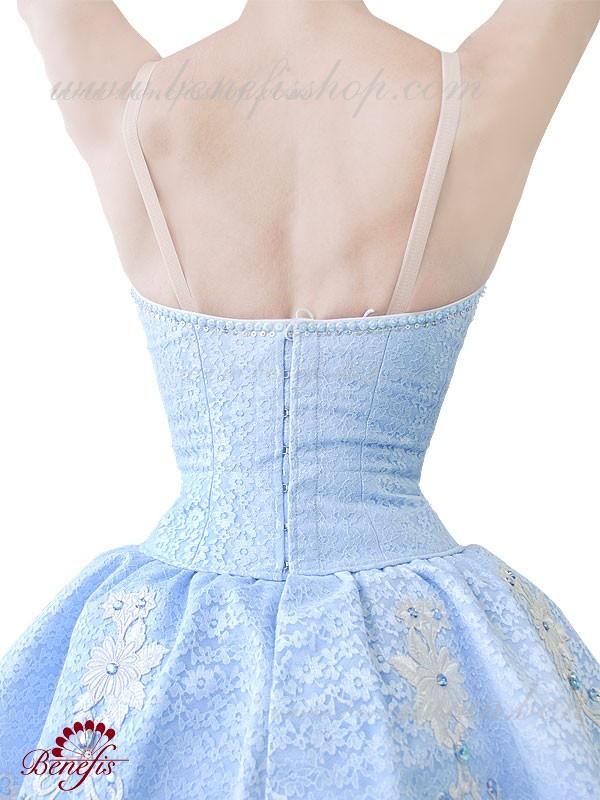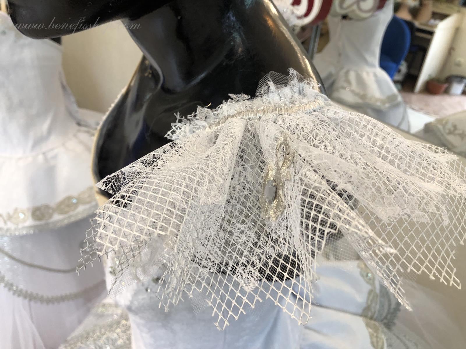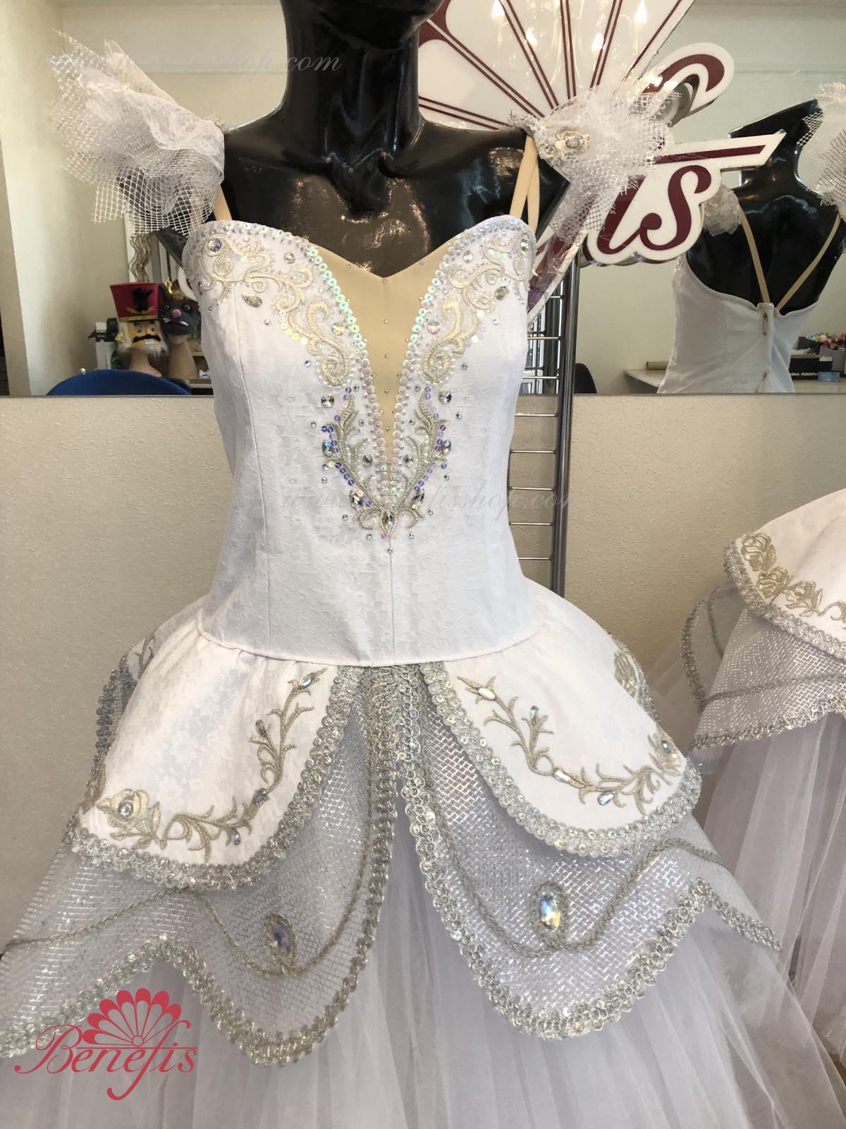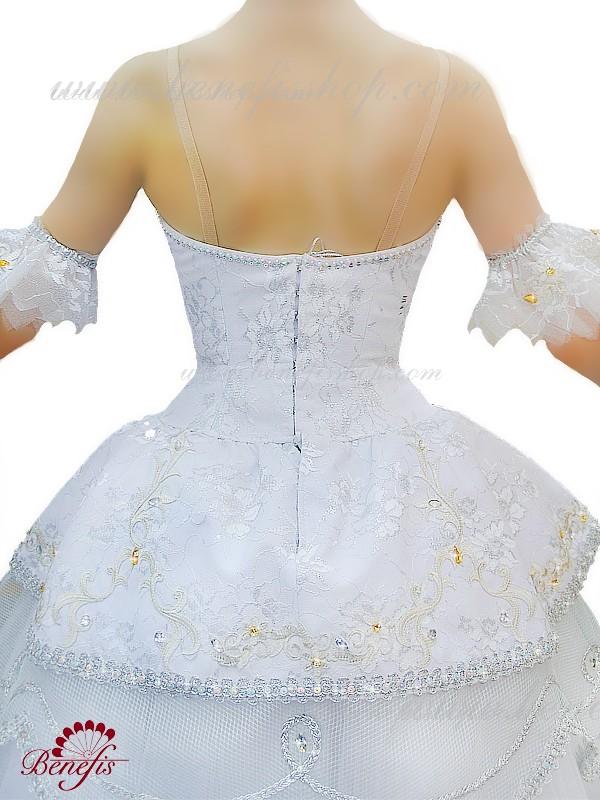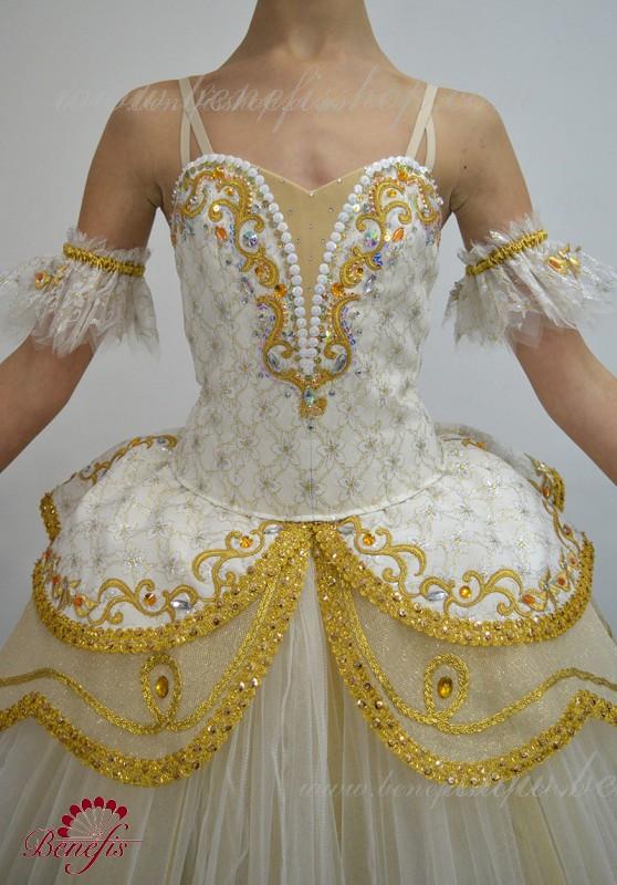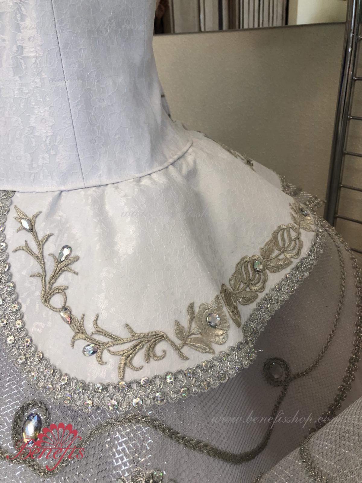Exquisite applications are used as the costumes décor, along with a big quantity of rock crystals, bugles, beads.
