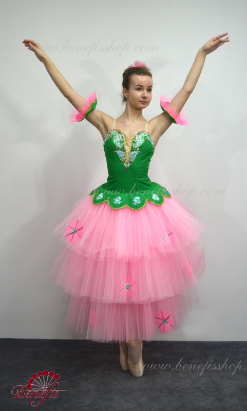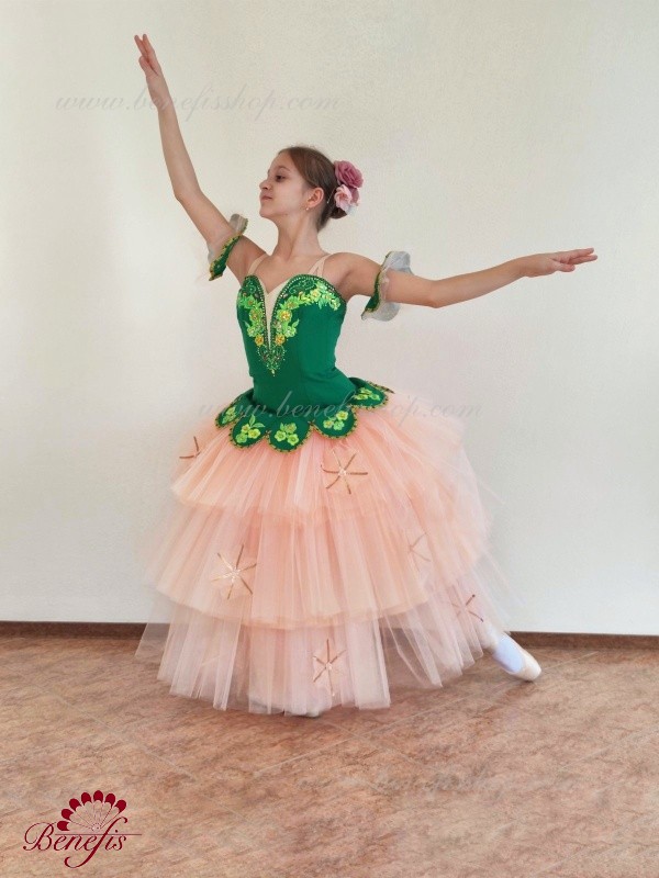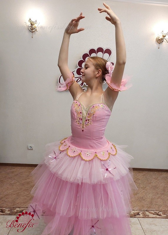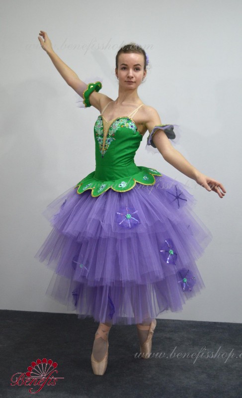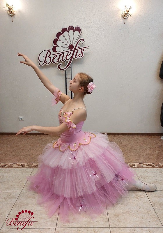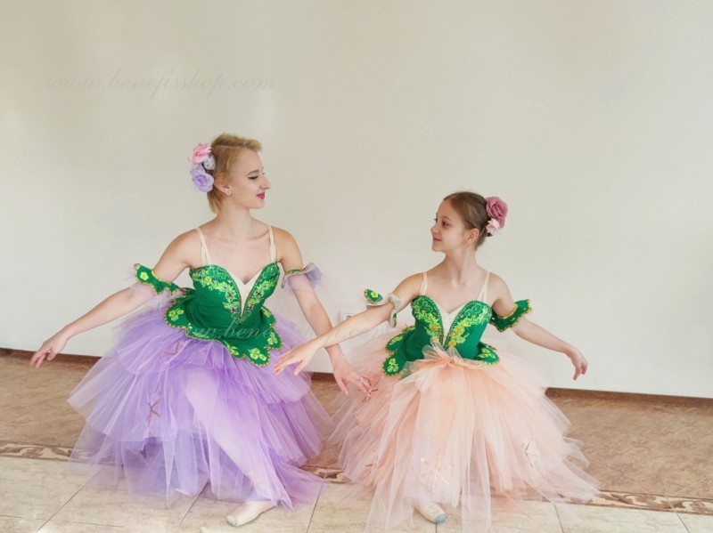 The skirt consists of three layers, which have different length. The length of layers is carried out in accordance with the clients’ wish. The skirt is decorated with embellishments in the shape of flowers.