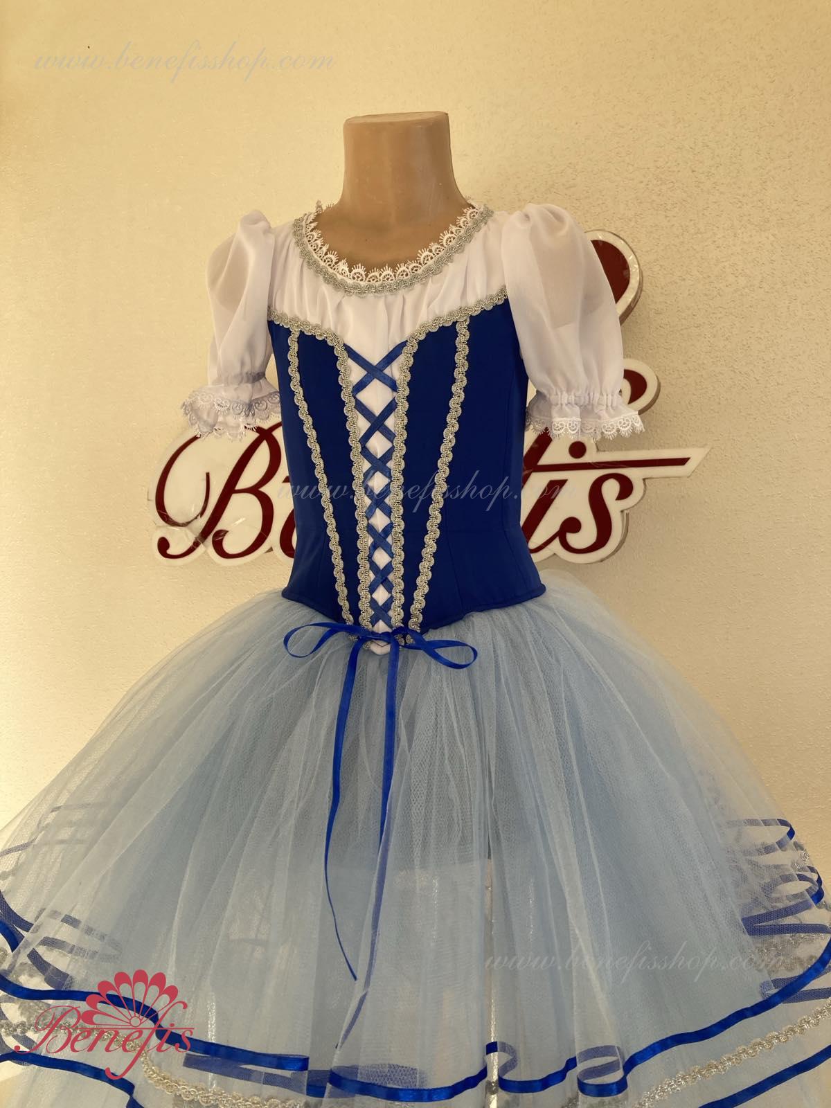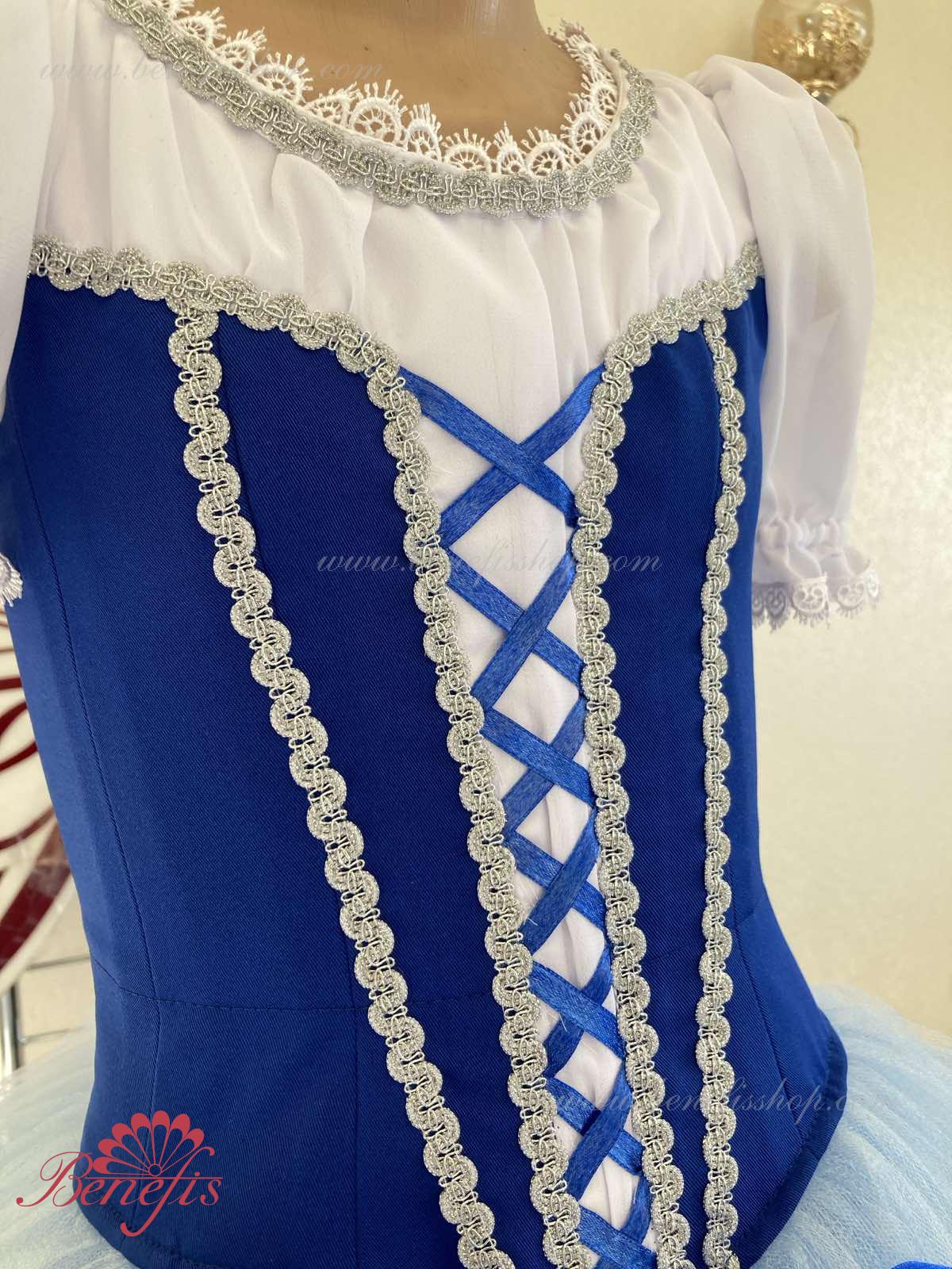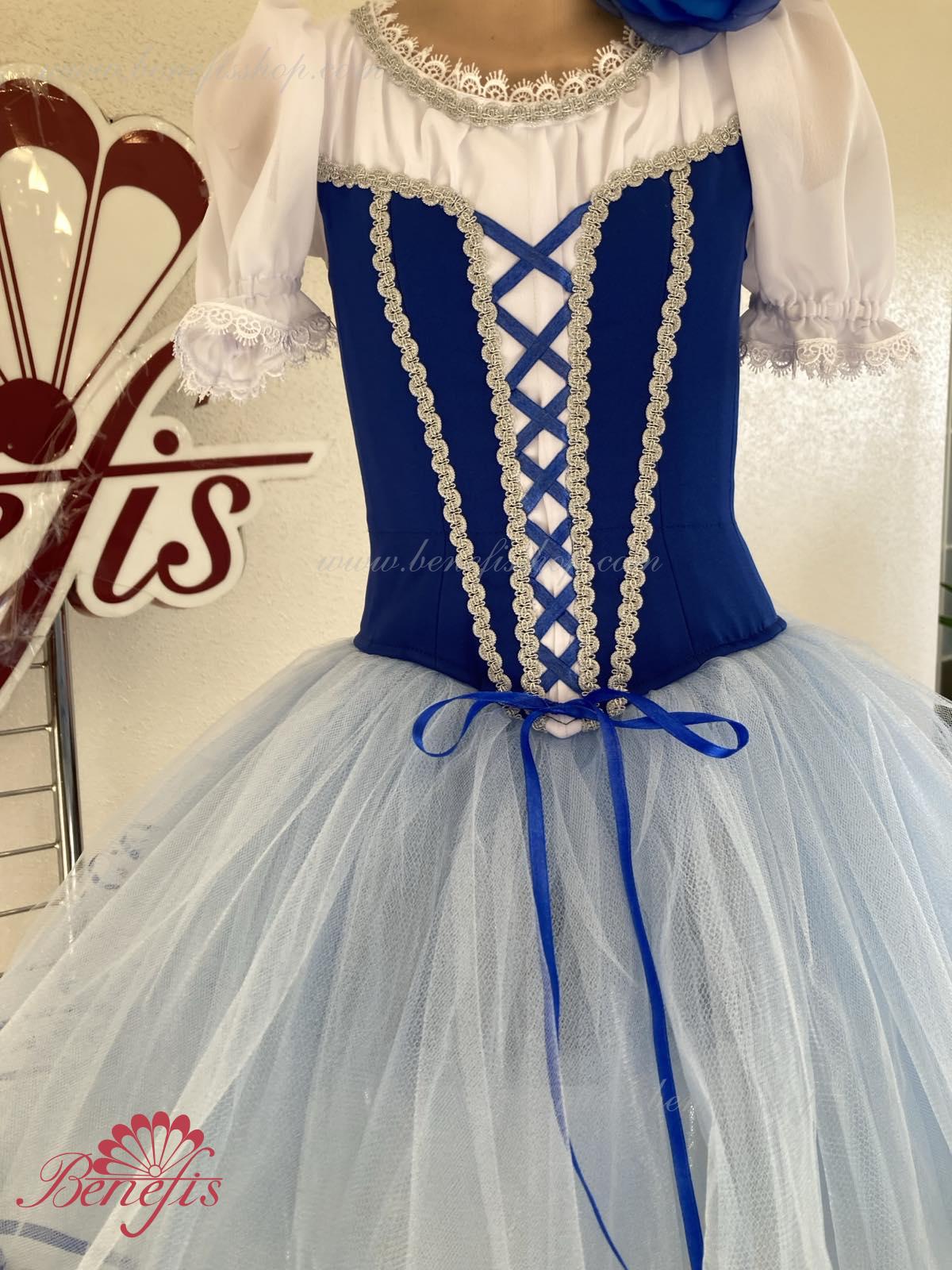 The wide skirt, below the knee length, consists of 5 layers of hard and soft tulle and the top layer is decorated with decorative lace.