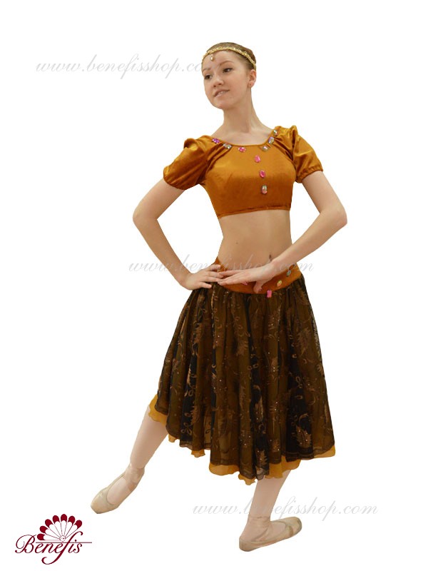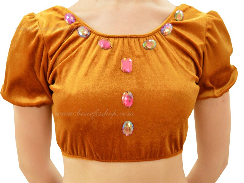 Bodice - consists of elastic fabric (velvet). The bodice is decorated handmade with golden decor in the form of rhinestones.
