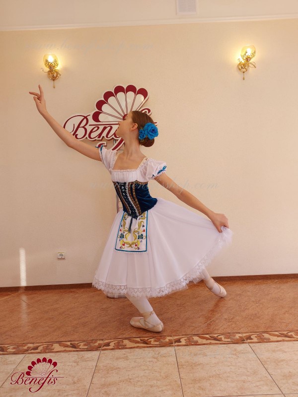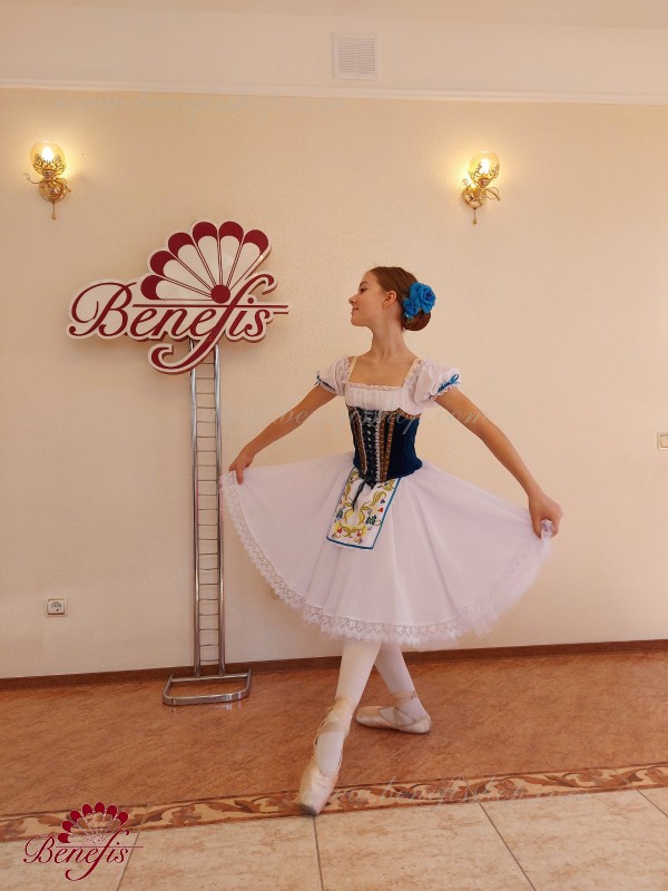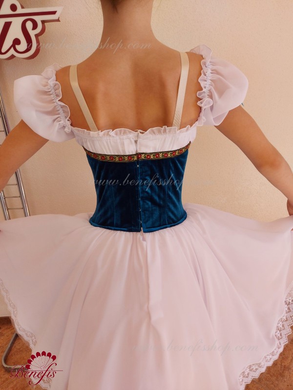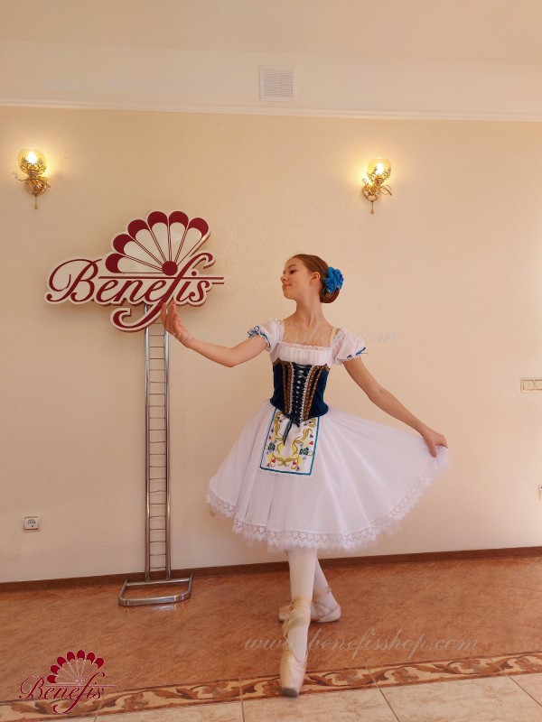 Details: dress. The bodice consists of a corset with a chiffon blouse. The skirt consists of: 2 layers of tulle, 1 layer of chiffon with lace. The apron and bodice are decorated.