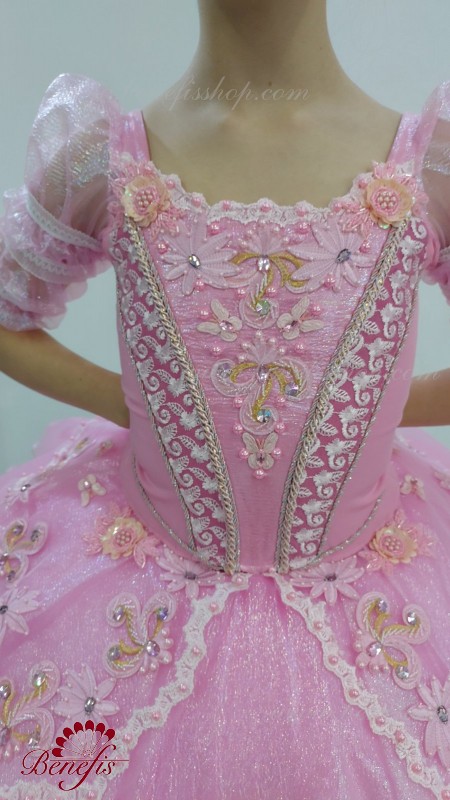 Rhinestones, glass beads, appliques, braid, lace are used as the decoration of the tutu and bodice. This decor looks great from the stage.