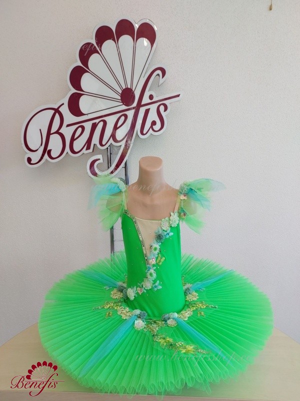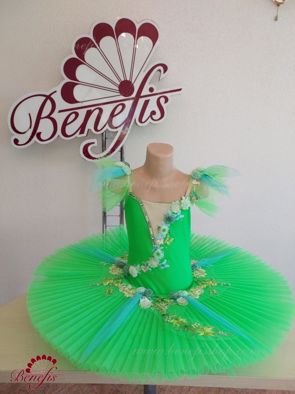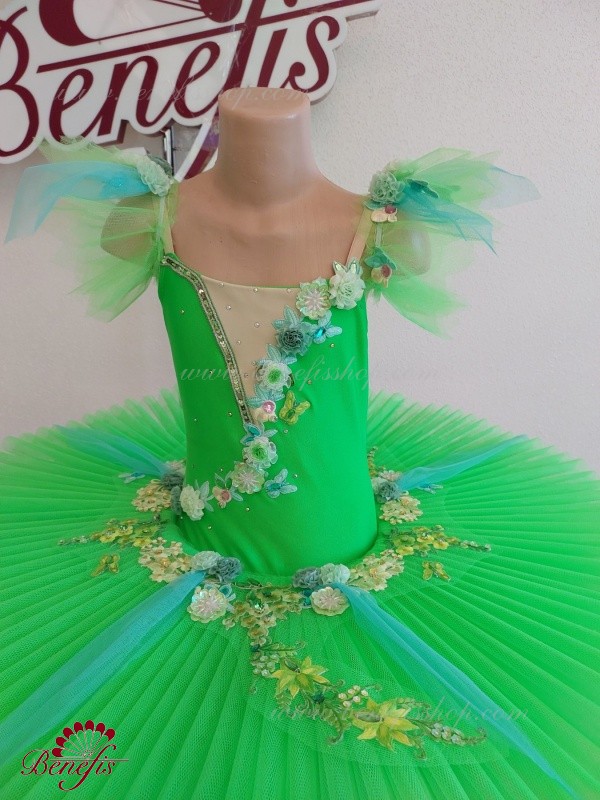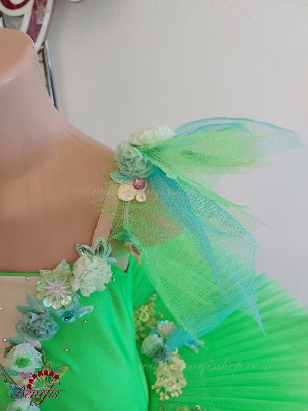 Appliques, beads, satin flowers are used as the decoration of the tutu and bodice.