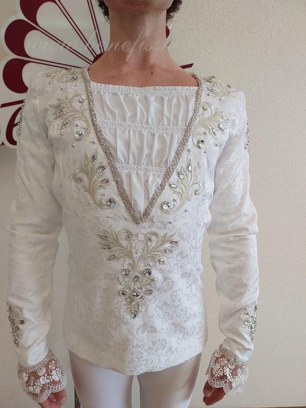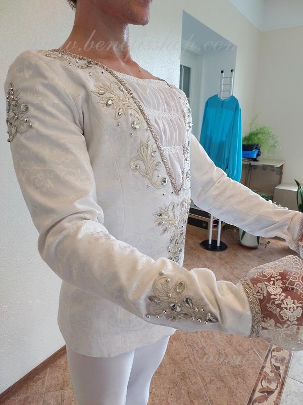 Fastens at the back with two rows of loops. As a decoration, braid, appliques, sequins, rhinestones and lace .