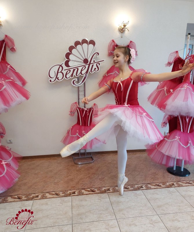 This concert costume is made on the basis of a velvet leotard and a tutu on hoops.