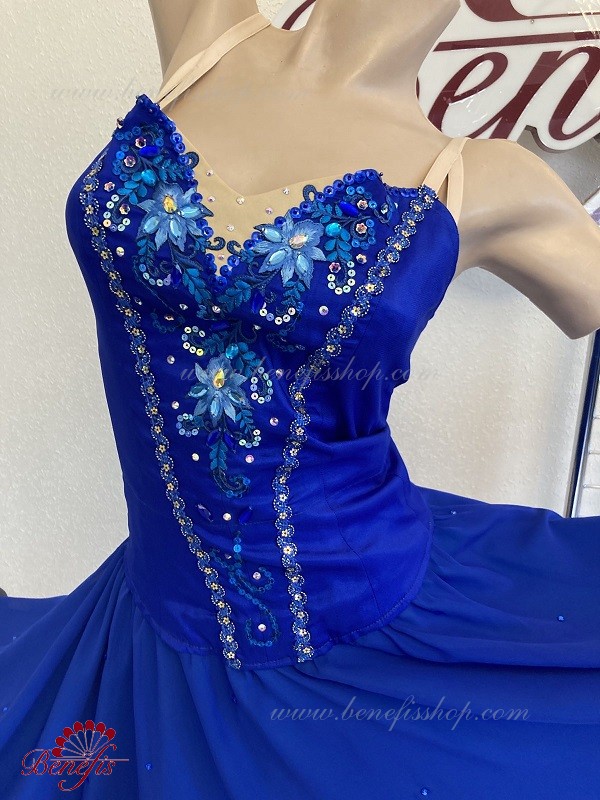 There are two rows of hooks for the comfortable adjustment and an inner cord to tighten the bodice at the chest level.The skirt is made of 2 layers of chiffon. Biflex underpants.
