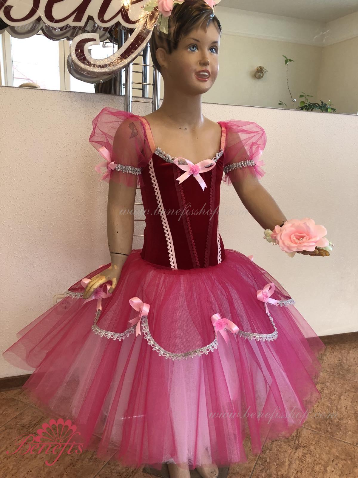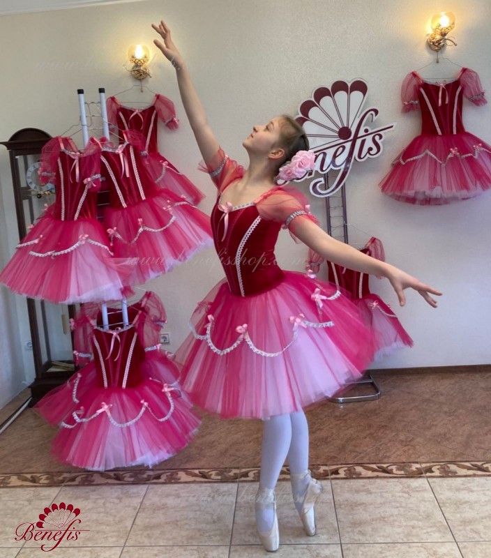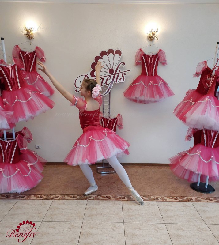 This concert costume is made on the basis of a velvet leotard and a tutu on hoops.