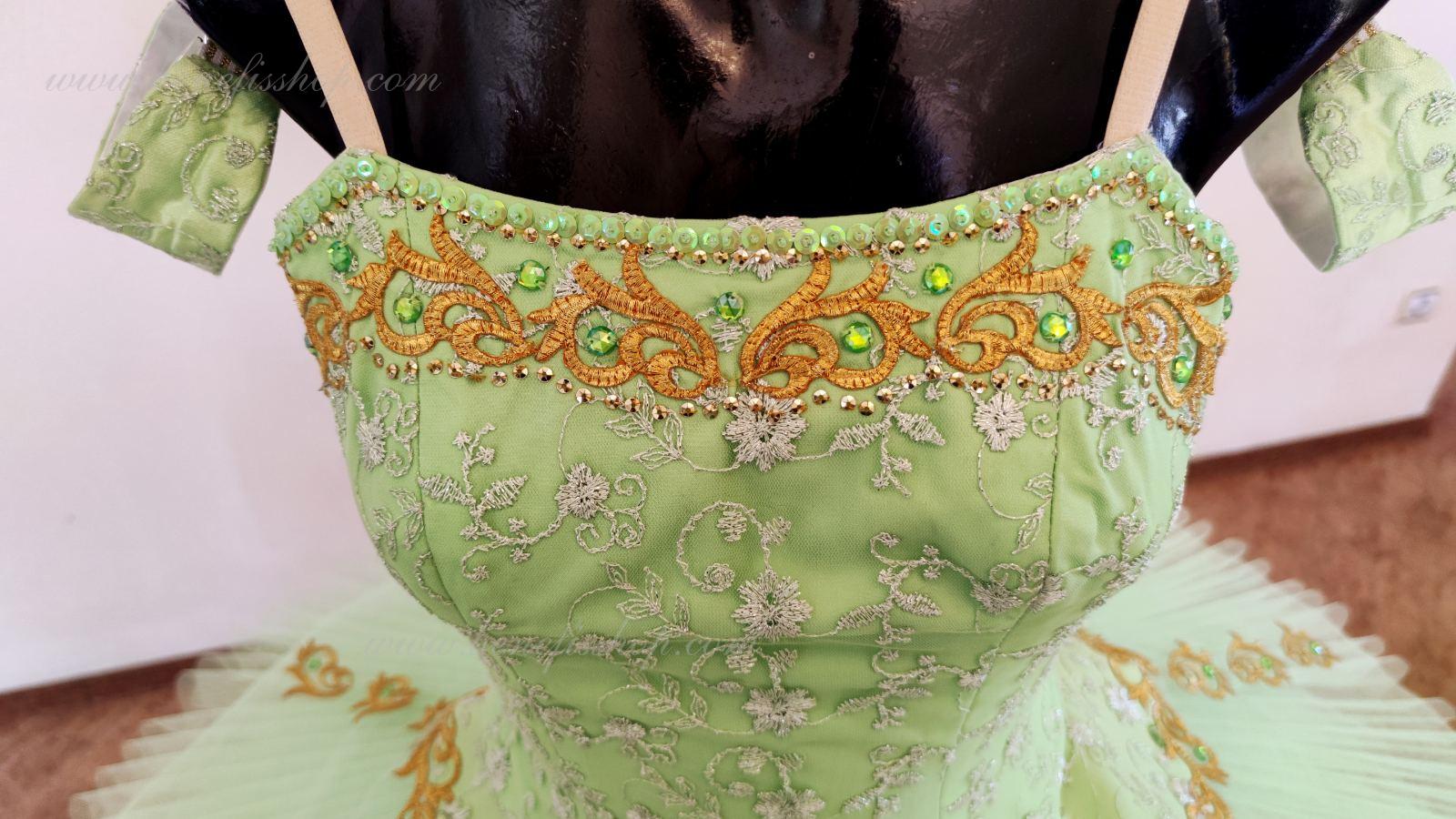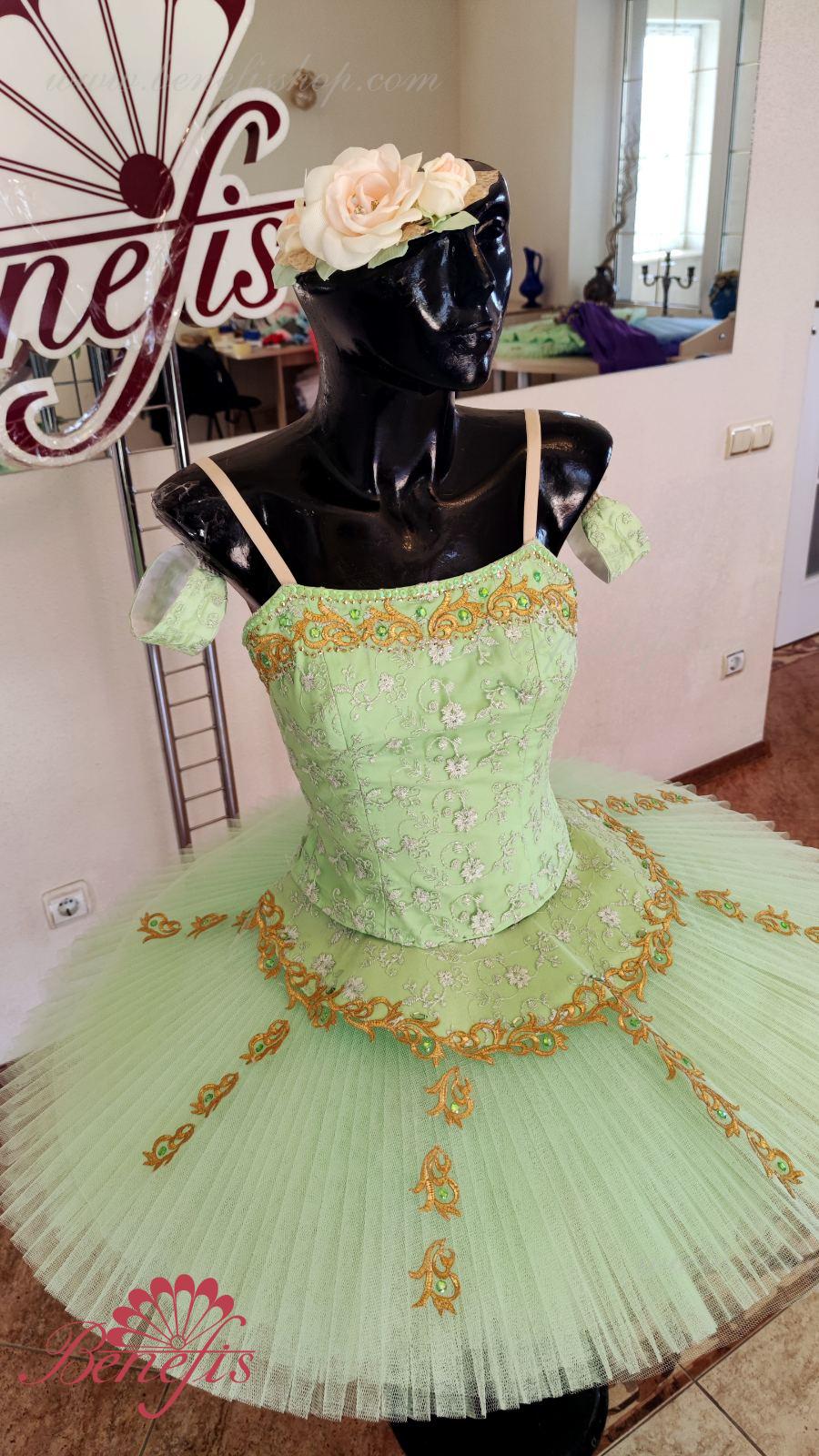 Detalii: costum.Corset: Corsetul este confectionat din tesatura semi-elastica (gabardina), detaliile laterale sunt din b\f, duplicate cu guipure. Corsetul este fixat la spate cu un singur rând de cârlige, cablul din interior servește la reglarea dimensiunii în zona pieptului. Baza este cu 5 straturi pe slip biflex, partea inferioară superioară este din tul moale.