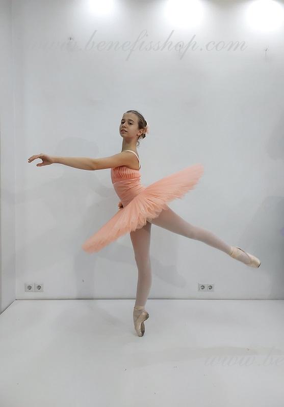 Partea inferioară a corsetului este realizată din tafta. Șase straturi gradate plisate de tul dur pe chiloți din tul cu un jug de 6 cm atașat la o centură elastică.