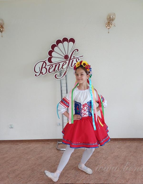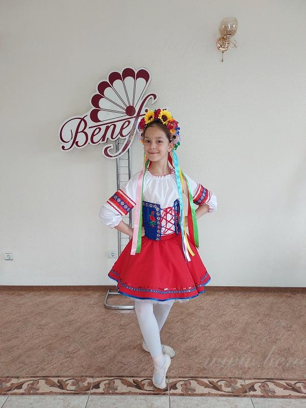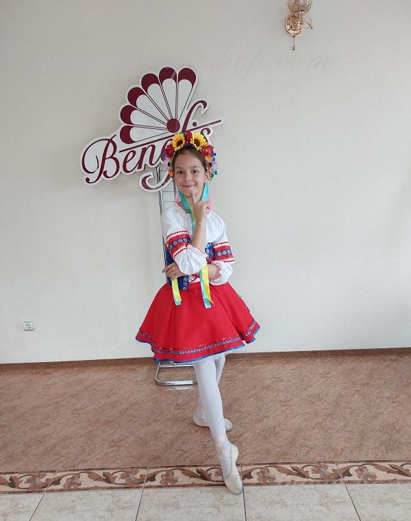 Pentru femei și fete: constând dintr-o bluză albă și jupon, fustă și curea, toate imitând modele naționale moldovenești și ucrainene. Costumele sunt realizate respectând cele mai bune tradiții ale culturii ucrainene.
