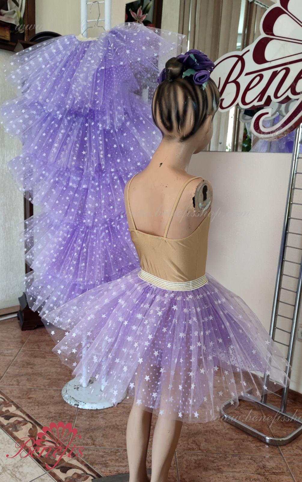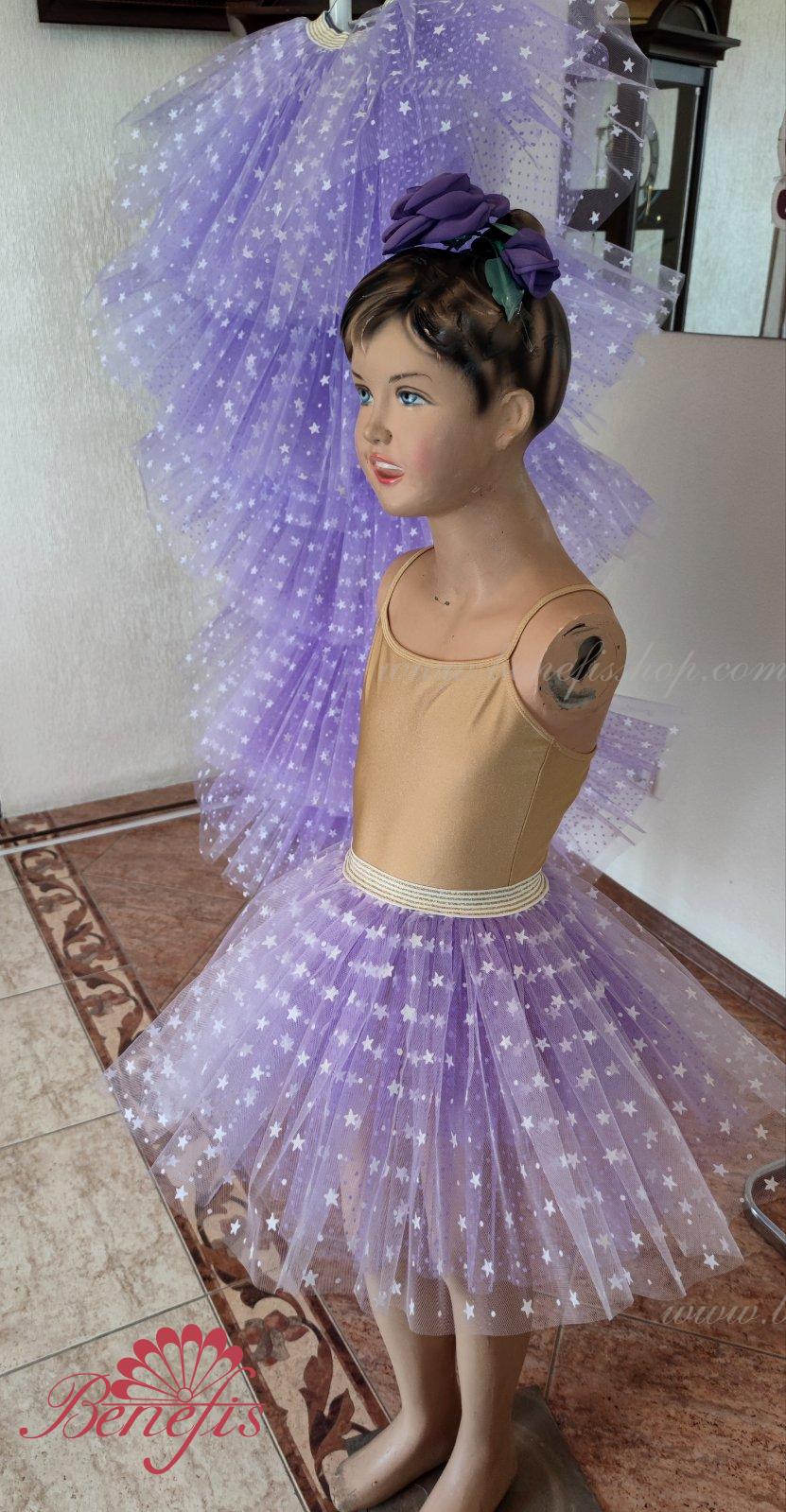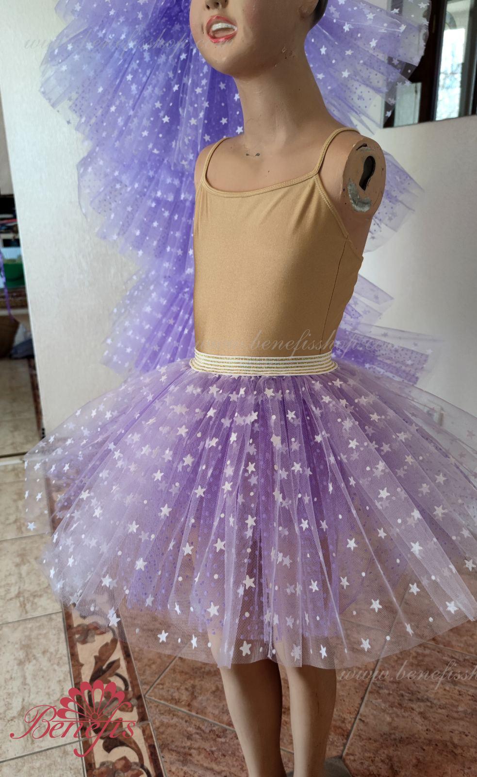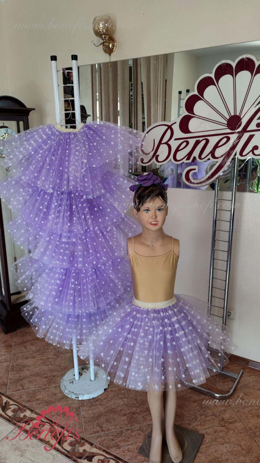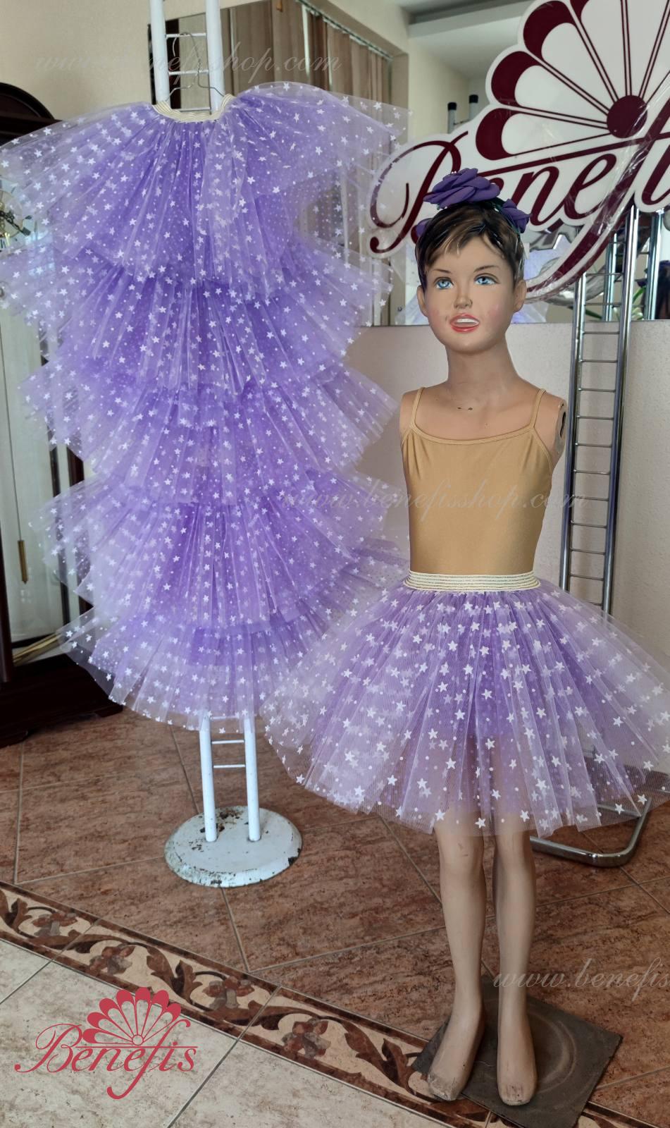 Fusta este indeplinita din 3 straturi de tul cu desen. Fusta este cu banda elastica.