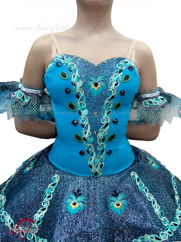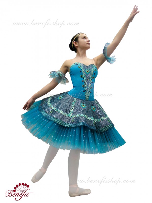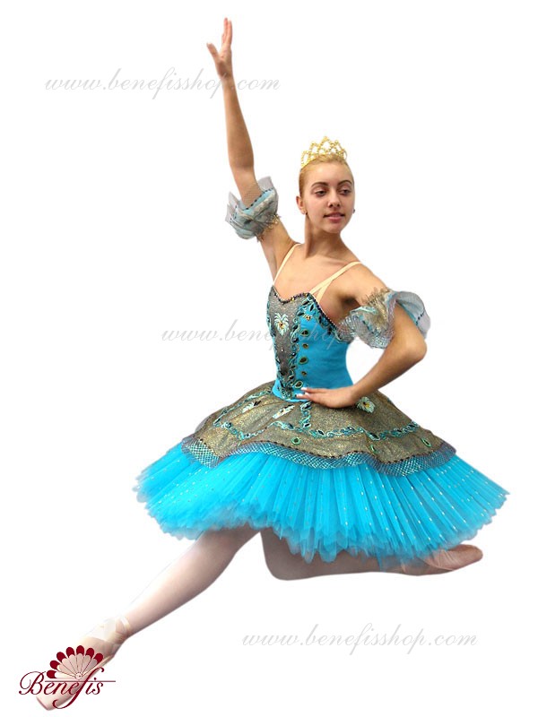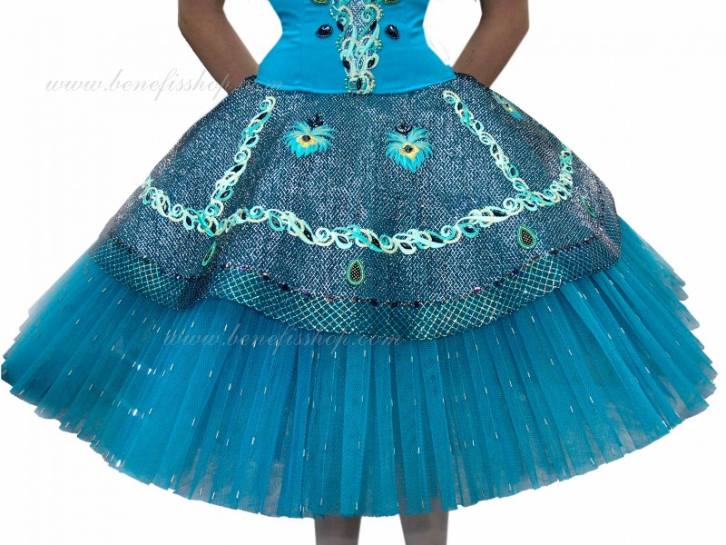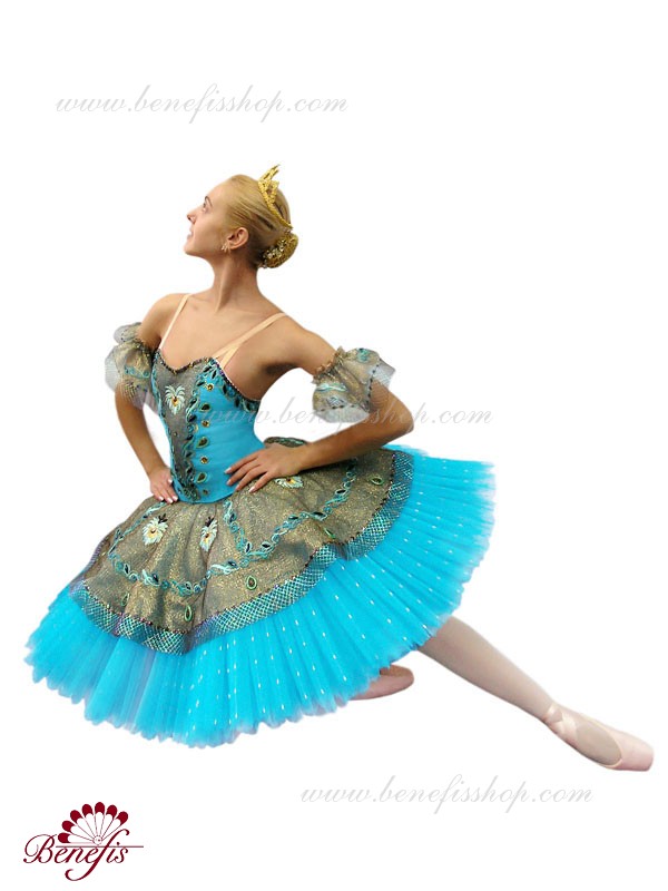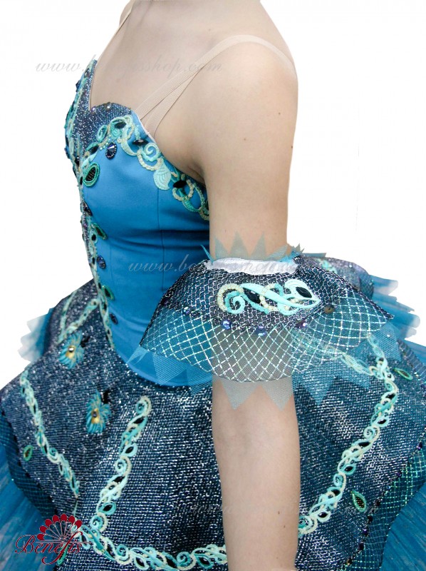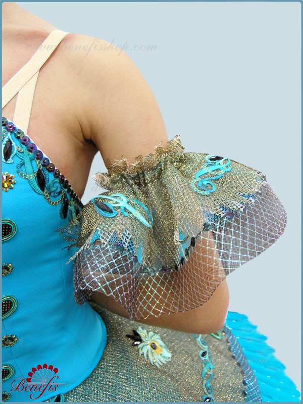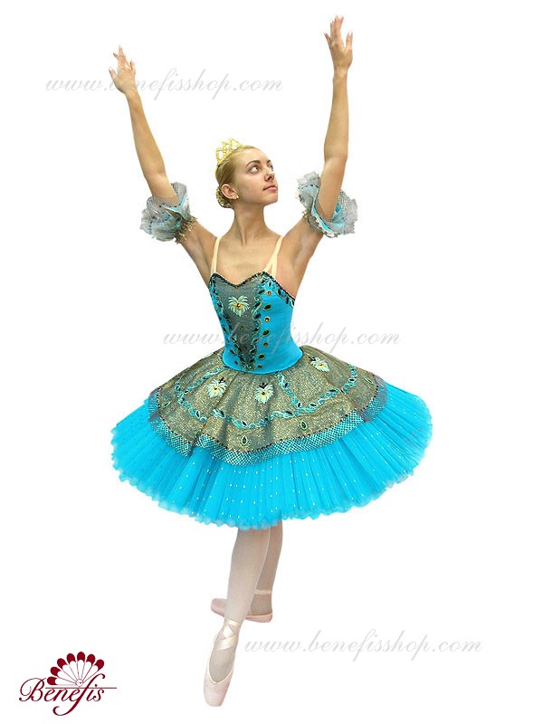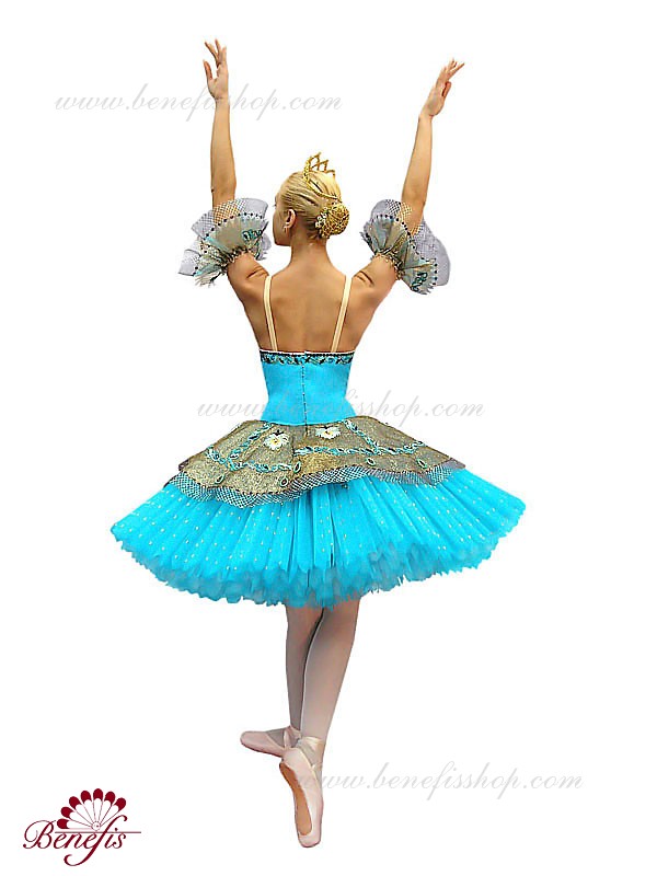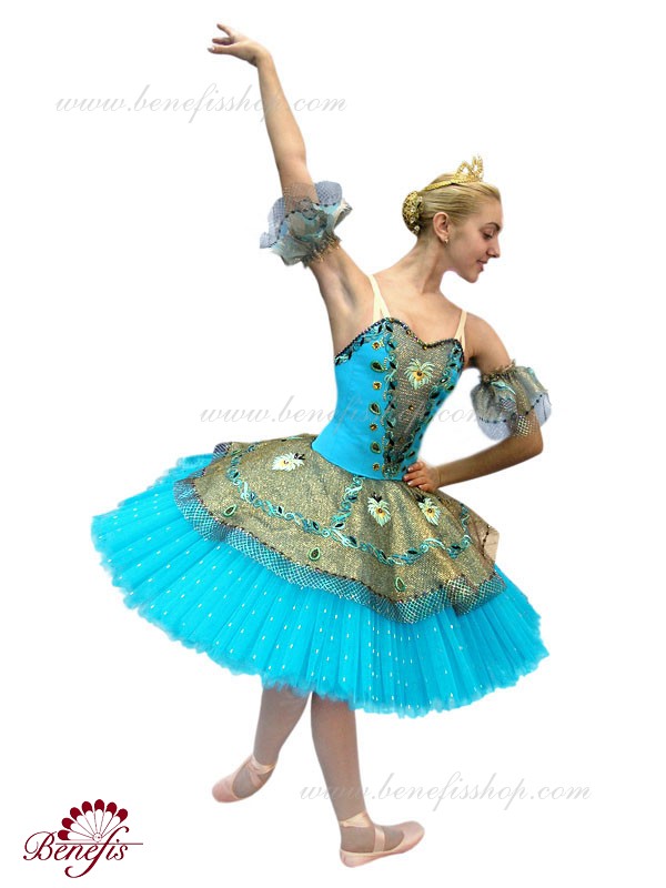 Costumul dat este confectionat in cele mai bune traditii romantice. Fusta prelungita are o forma de clopot si este confectionata fara cercuri. Stratul superior este fabricat dintr-o stofa in forma de plasa mascata. Panglica de culoare aurie este cusuta cu paiete aurii, strase si margele marunte de sticla. Pe corset sunt prezente doua rinduri de cirlige pentru regularea comoda. La dorinta cumparatorului pot fi folosite si moniste.Costumul poate fi utilizat si ca costum pentru concert in baletele “ Laurencia”, \"Esmeralda\" si “Arlekinada”.