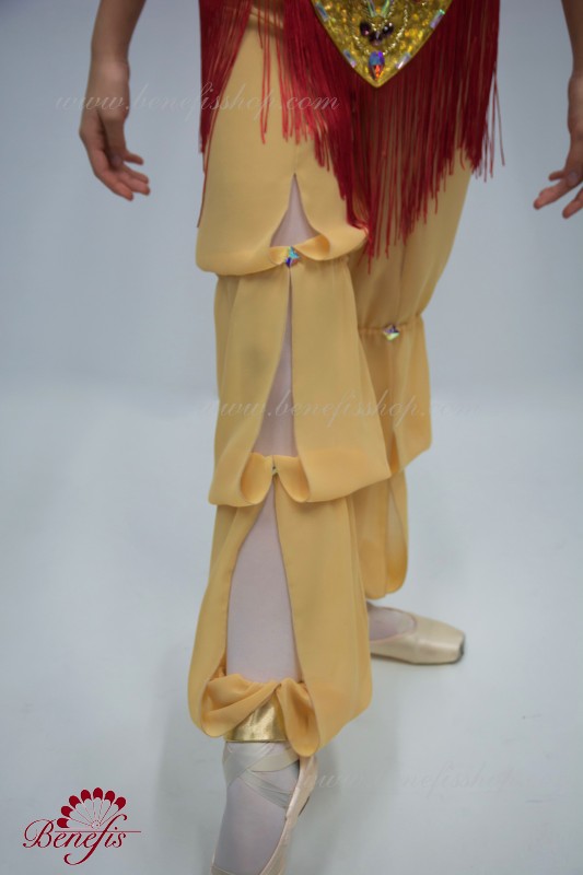 Pantalonii sunt din tesatura usoara de sifon, si se incheie la spate cu doua randuri de carlige.