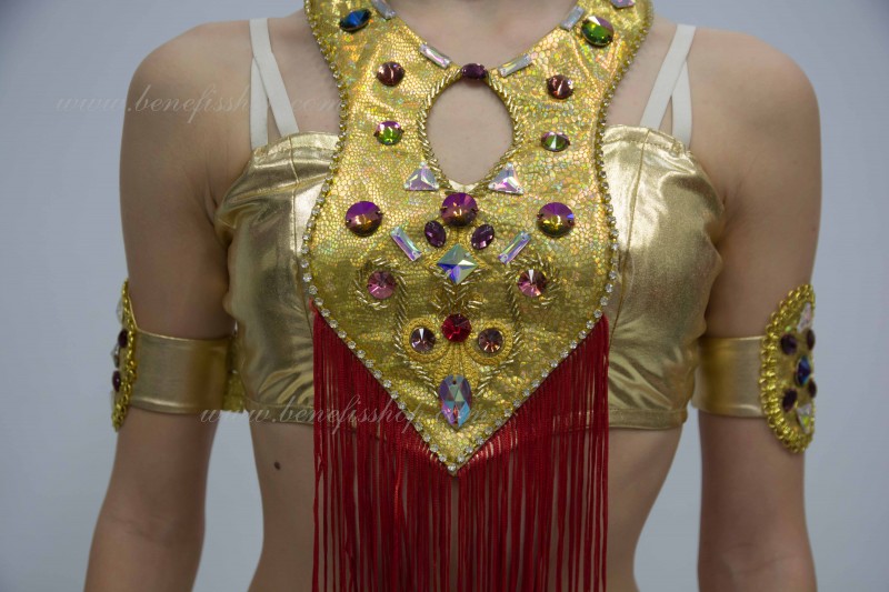 Detalii: corset scurt, pantaloni, bratara pentru brat.