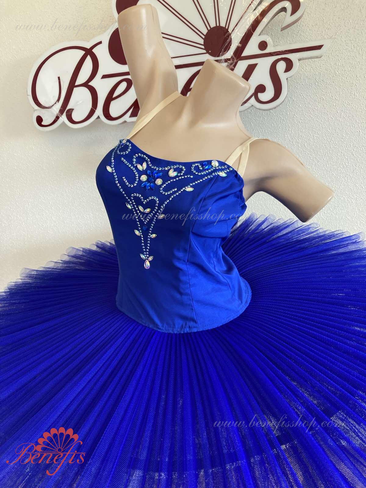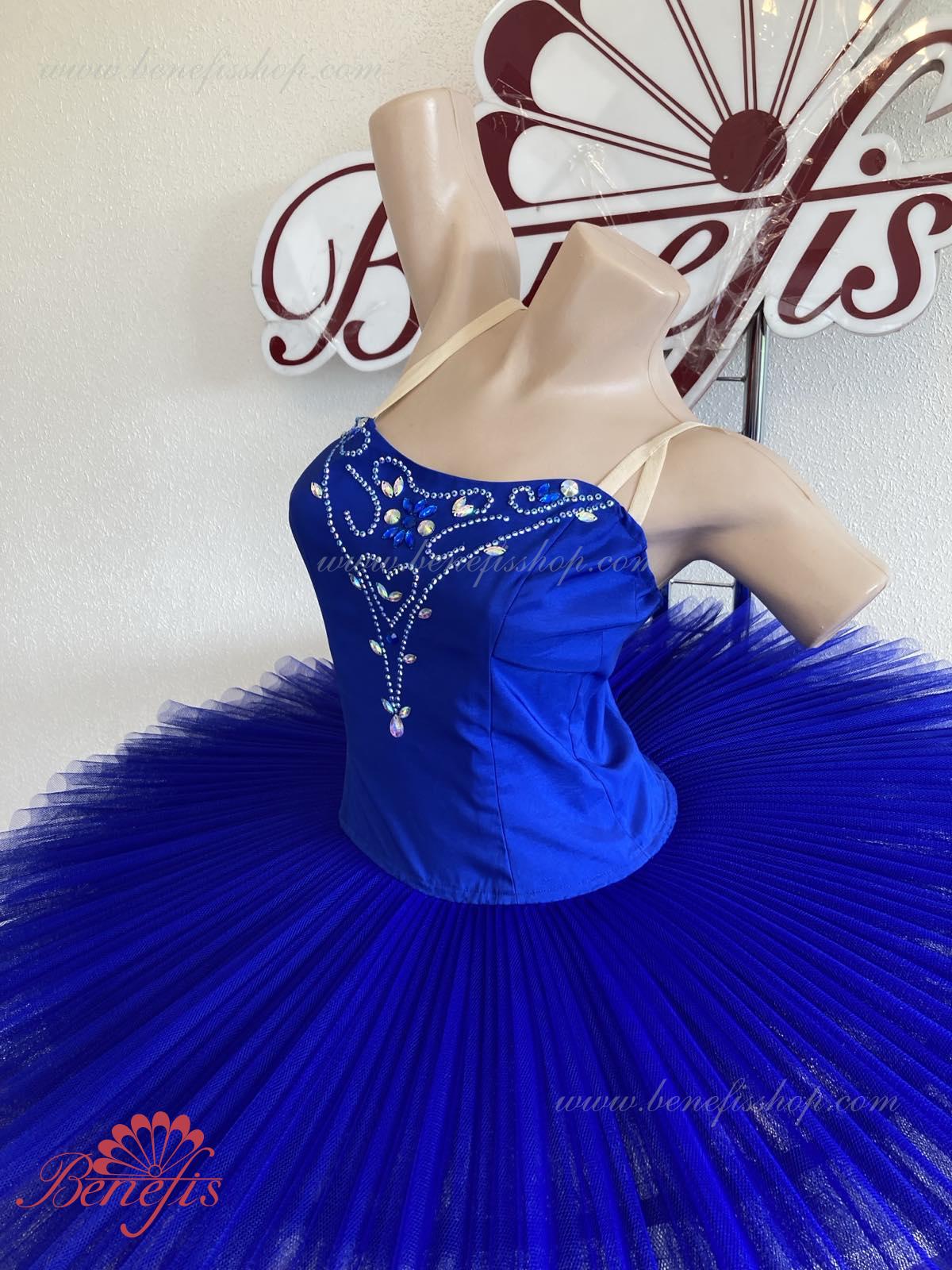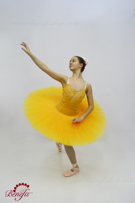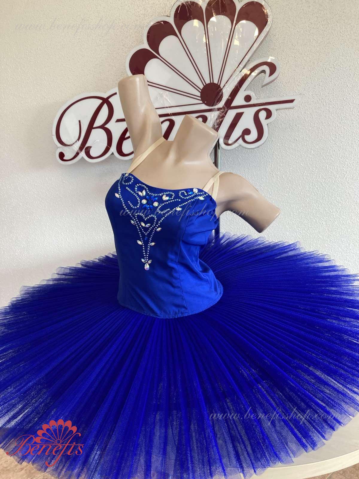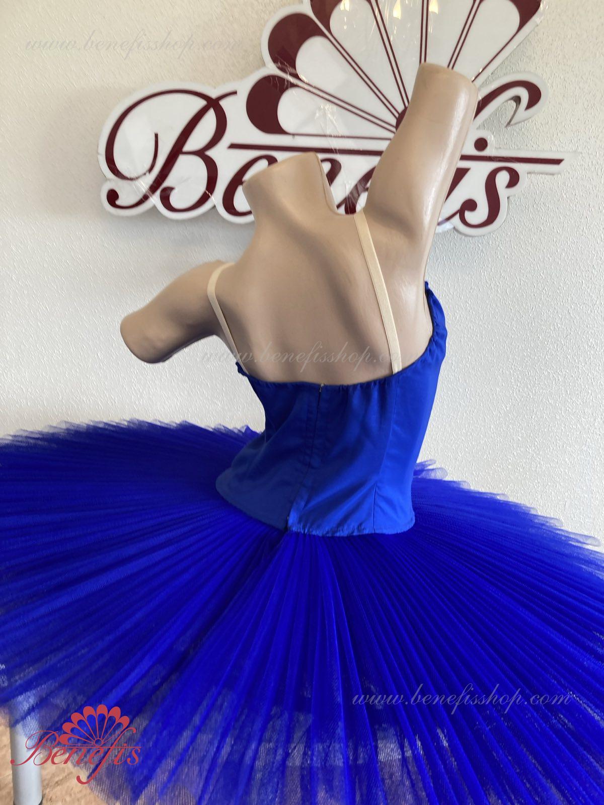 Сценический костюм выполнен на основе лифа Т0009 и пачки Т0001В, с легким декором в области груди. Пачка выполнена из 8 слоёв тюля. Все слои пачки заложены складками, как любая профессиональная пачка. Длина слоёв разная (в зависимости от размера изделия), идёт на уменьшение в направлении нижнего слоя. В середине слоёв вшит волан, куда вставляется стальной обруч.