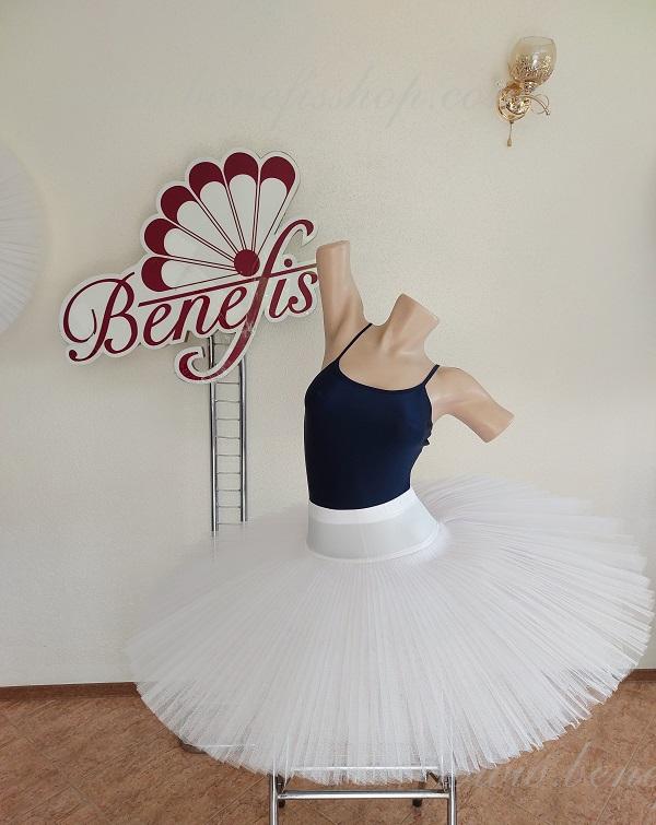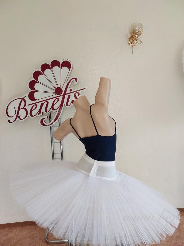 Opt straturi plisate gradate de tul semi-moale - sapte lungi si un scurt, aseazate pe chilotei din tul cu platca de 10 cm fixata pe centura elastica.