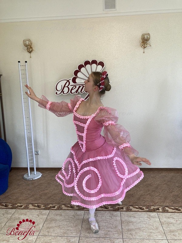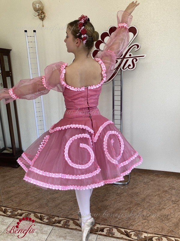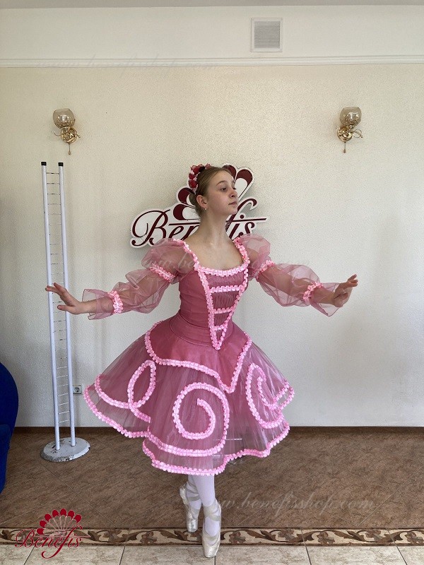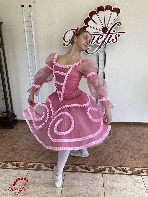 tutu de bază romantic aerisit este format din șase straturi de tul moale și dur, realizate dintr-o varietate de pene. Toate straturile sunt plantate pe chiloți de tul. Chiloții sunt conectați la un jug de tul (7 cm) atașat la o centură elastică.