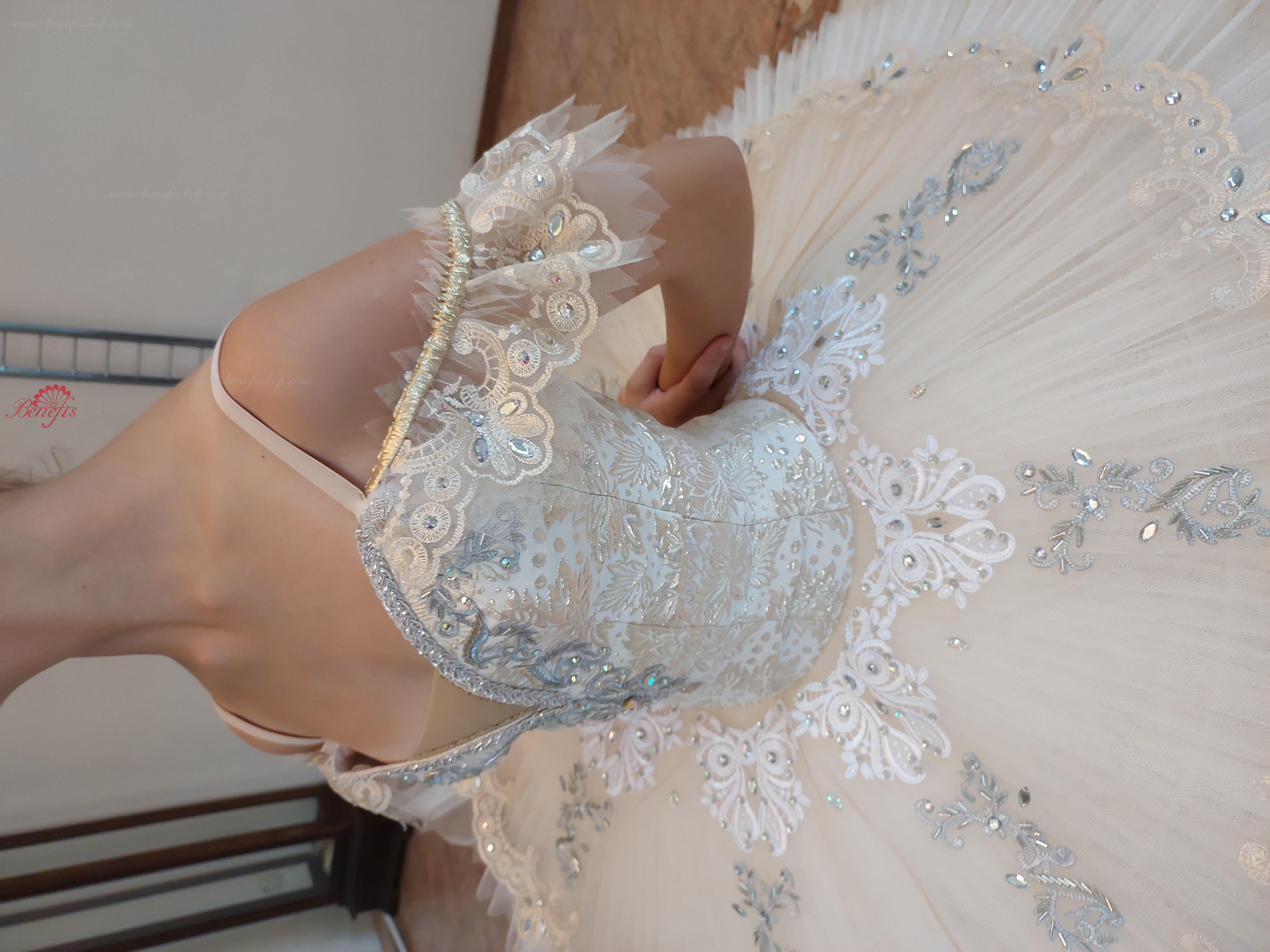 Costumul de scenă este realizat pe baza corsetului T0009 și tutu T0001E. Costumul este decorat cu pietre, aplicații, mărgele de sticlă, panglică, dantelă de cusut.