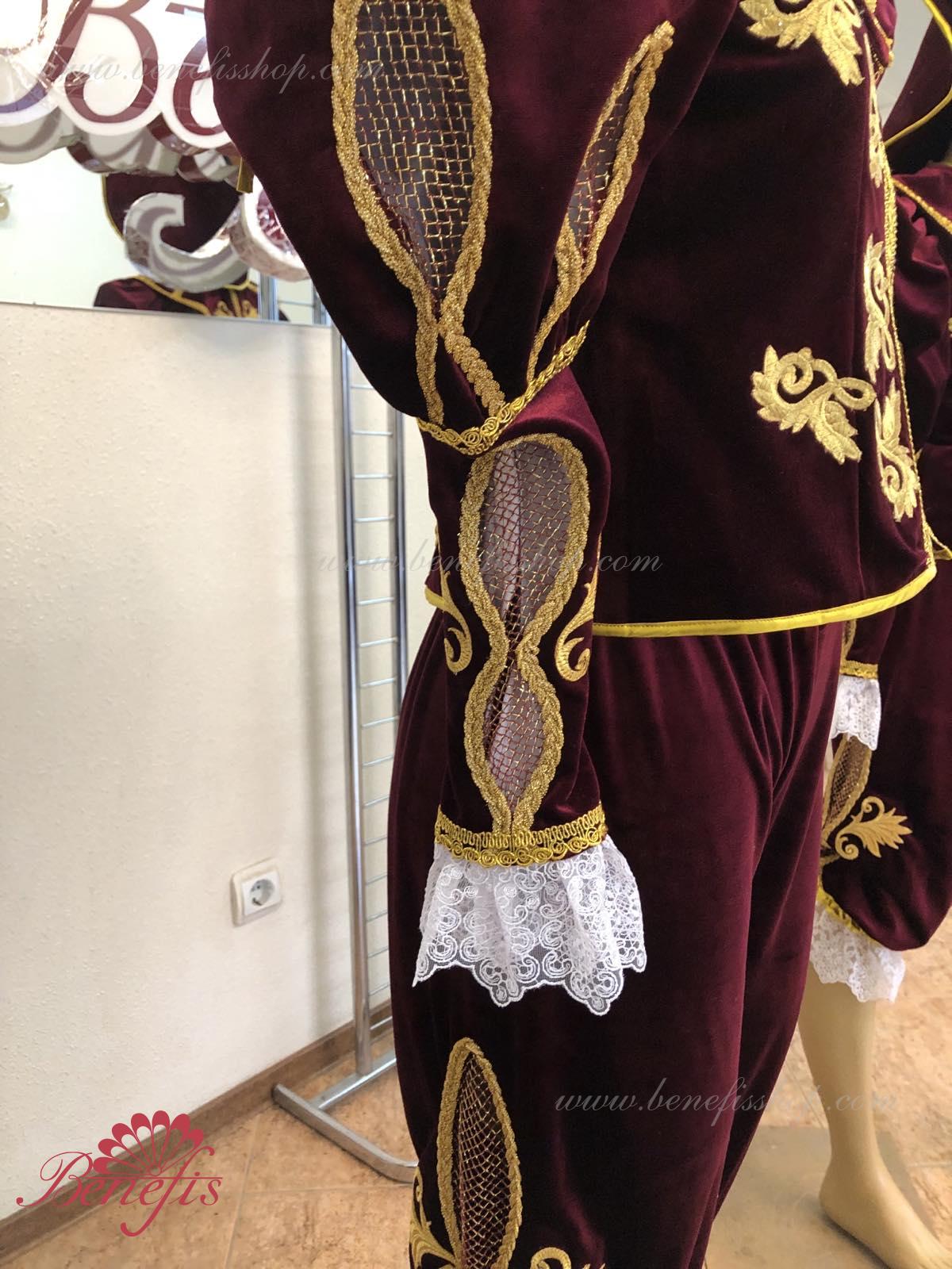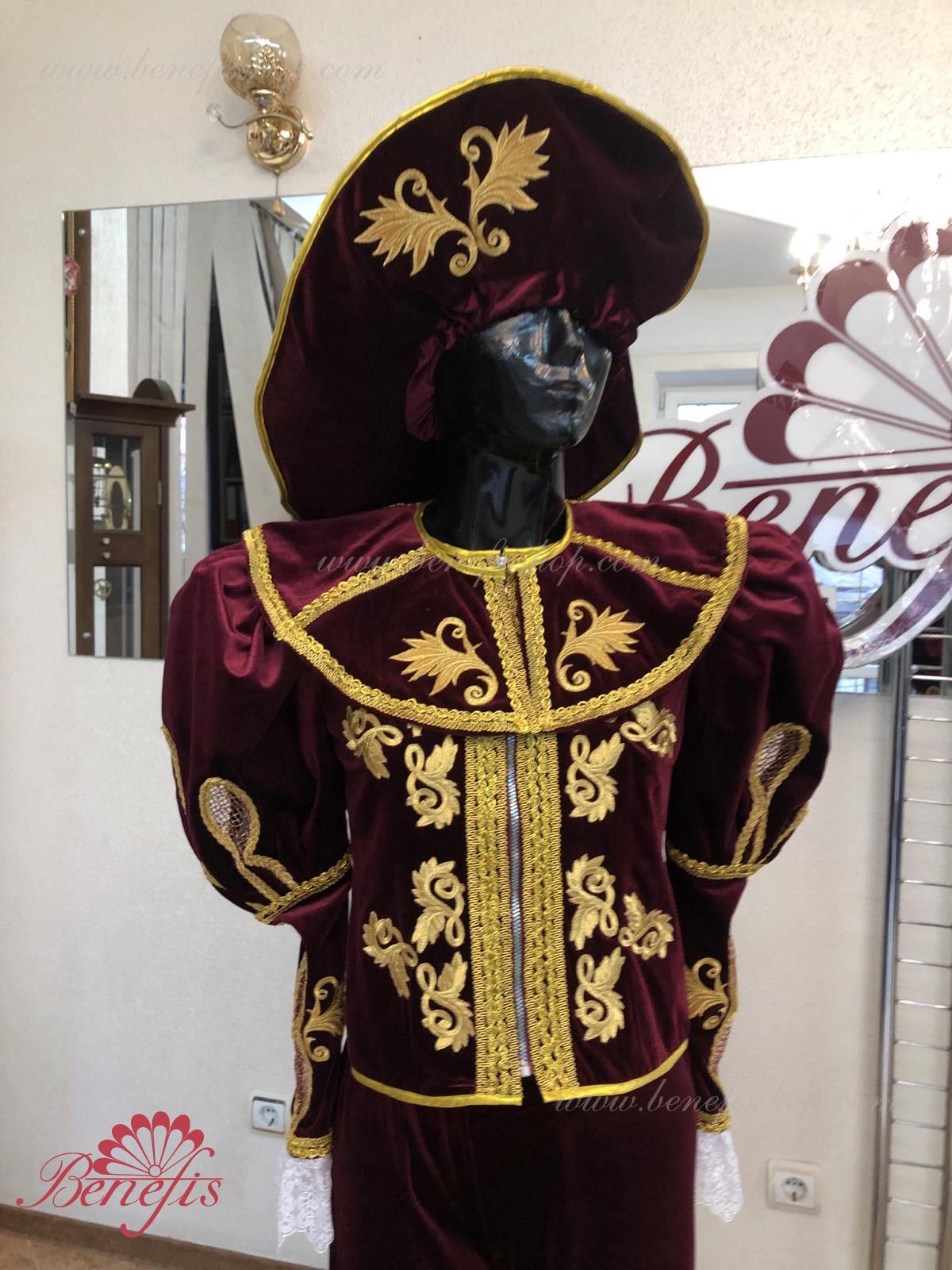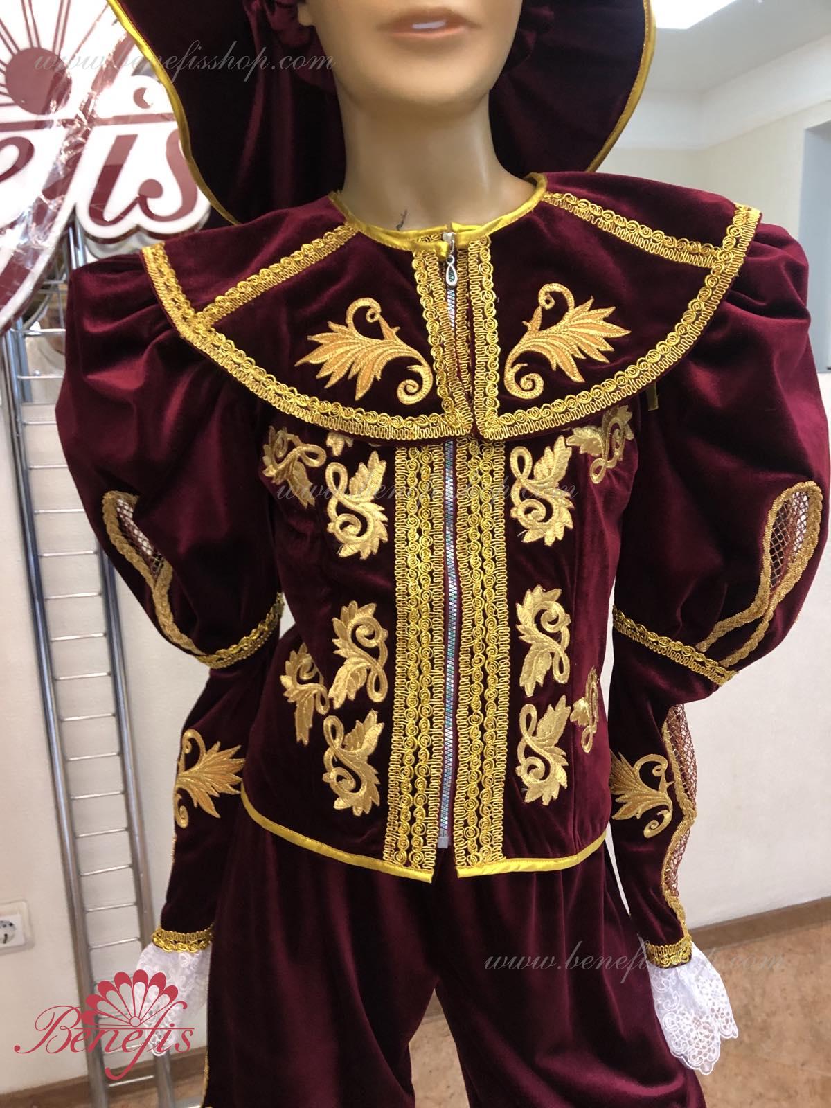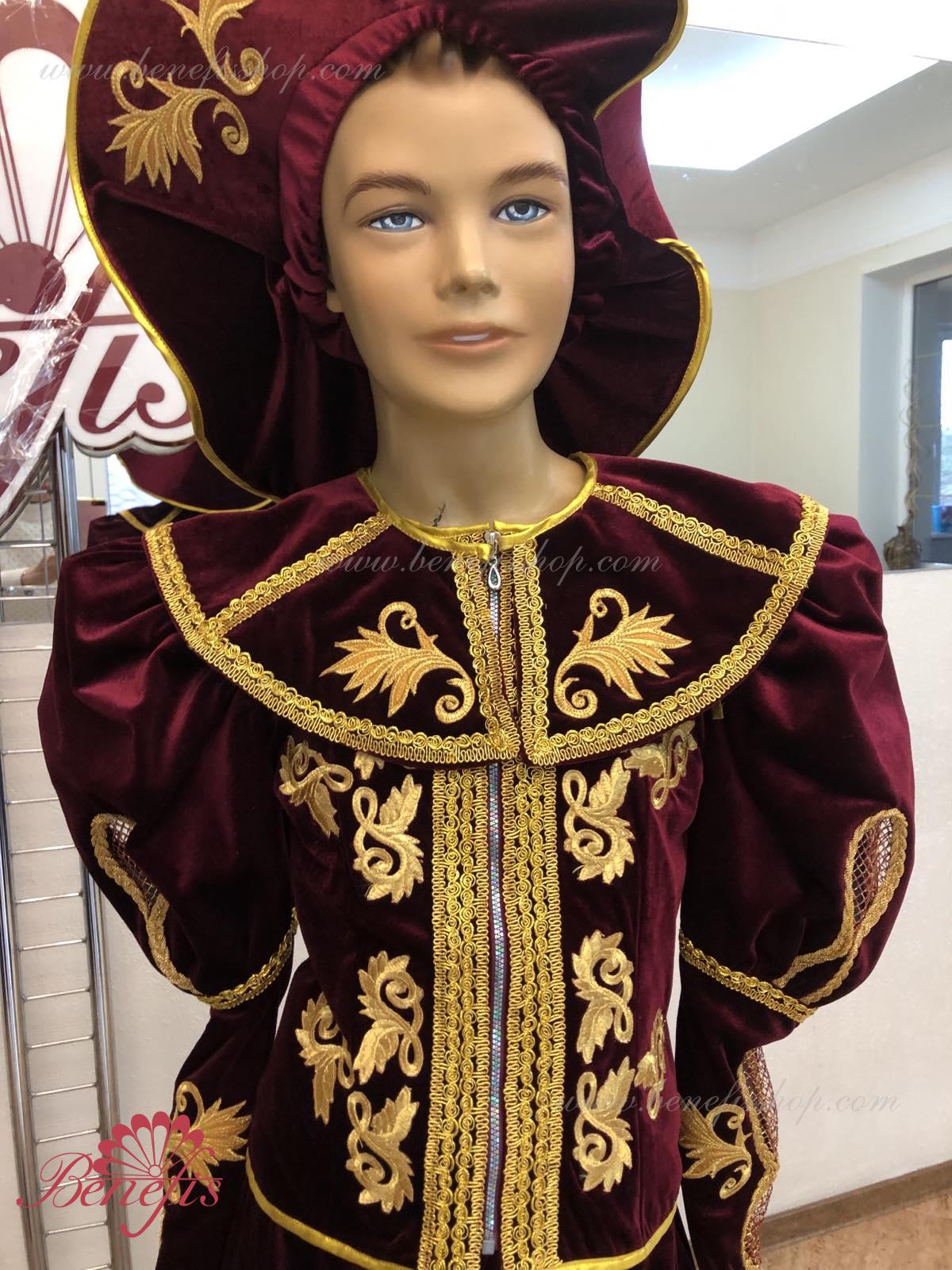 Costumul este confecționat din țesătură groasă. Jacheta este fixată cu fermoar în față. Întregul costum este bogat decorat cu panglică, aplicații, paiete și pietre. Inserții din plasă pe mâneci și părțile laterale ale pantalonilor. Gulerul este atașat la costum ca produs separat. Mânecile și picioarele sunt împodobite cu tul moale. Parura este făcută ca o beretă pe o bandă elastică.
