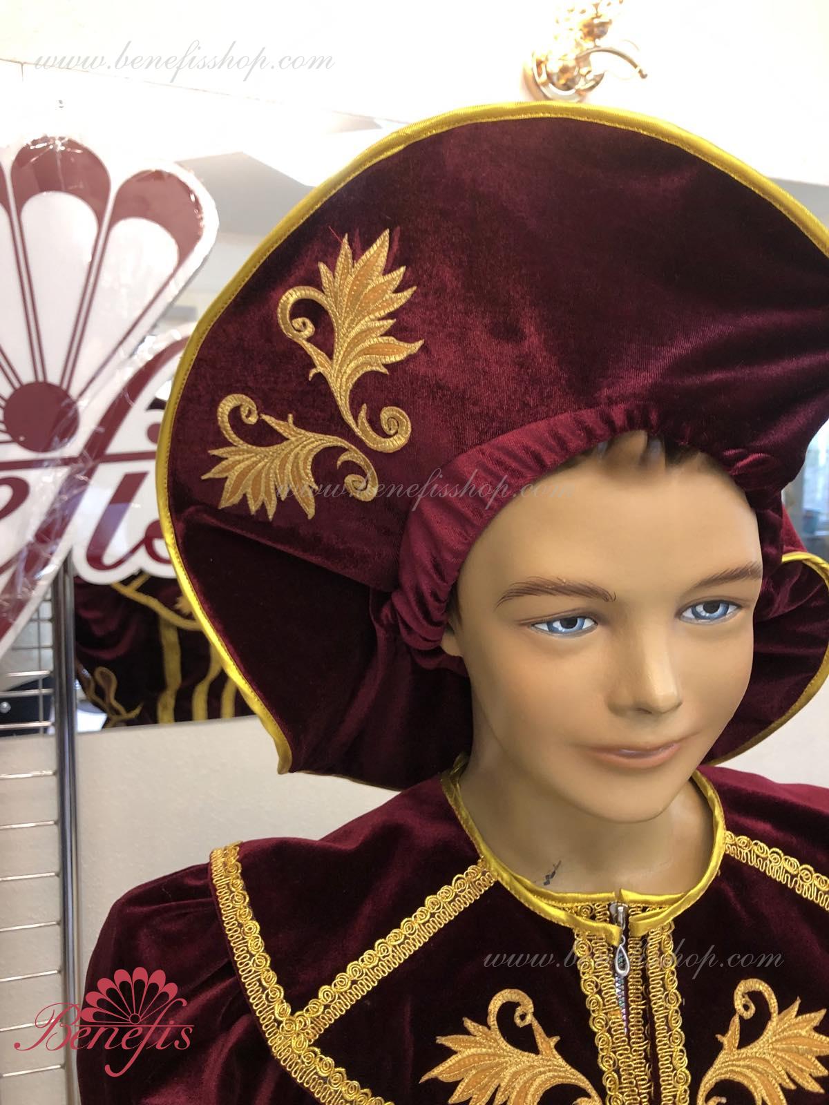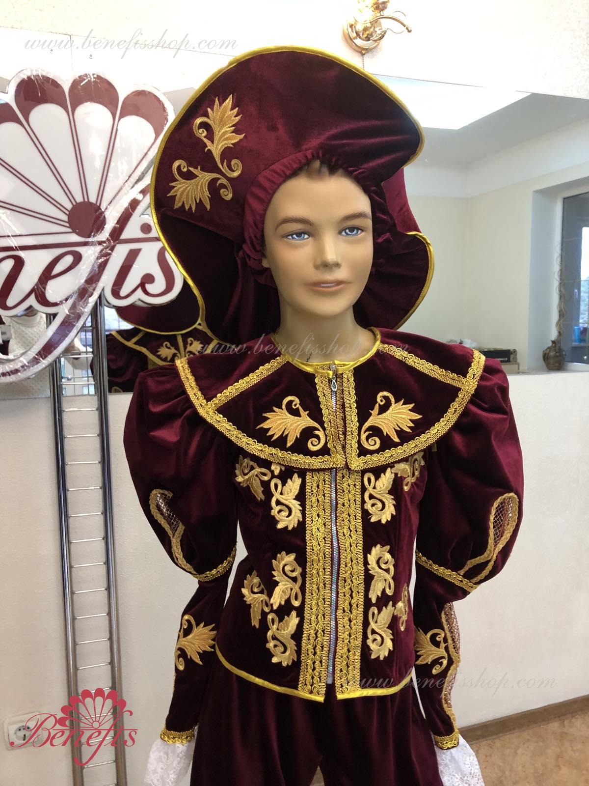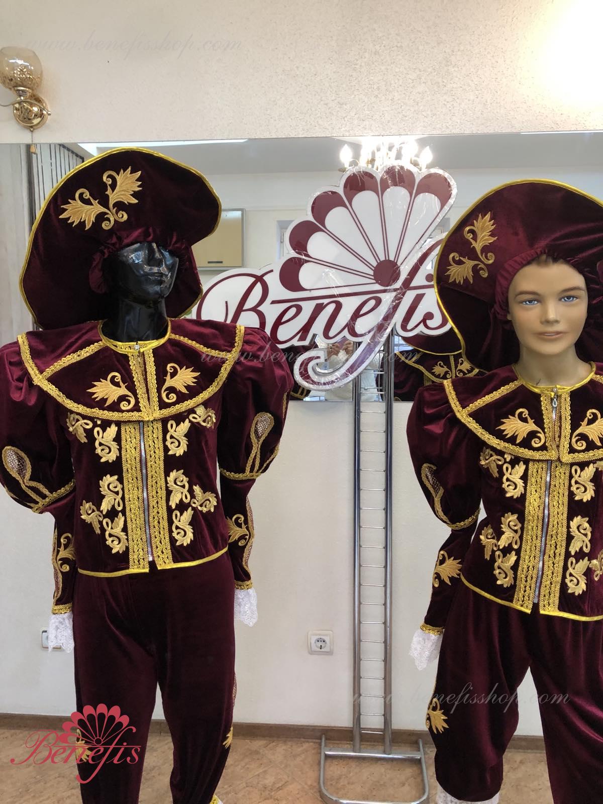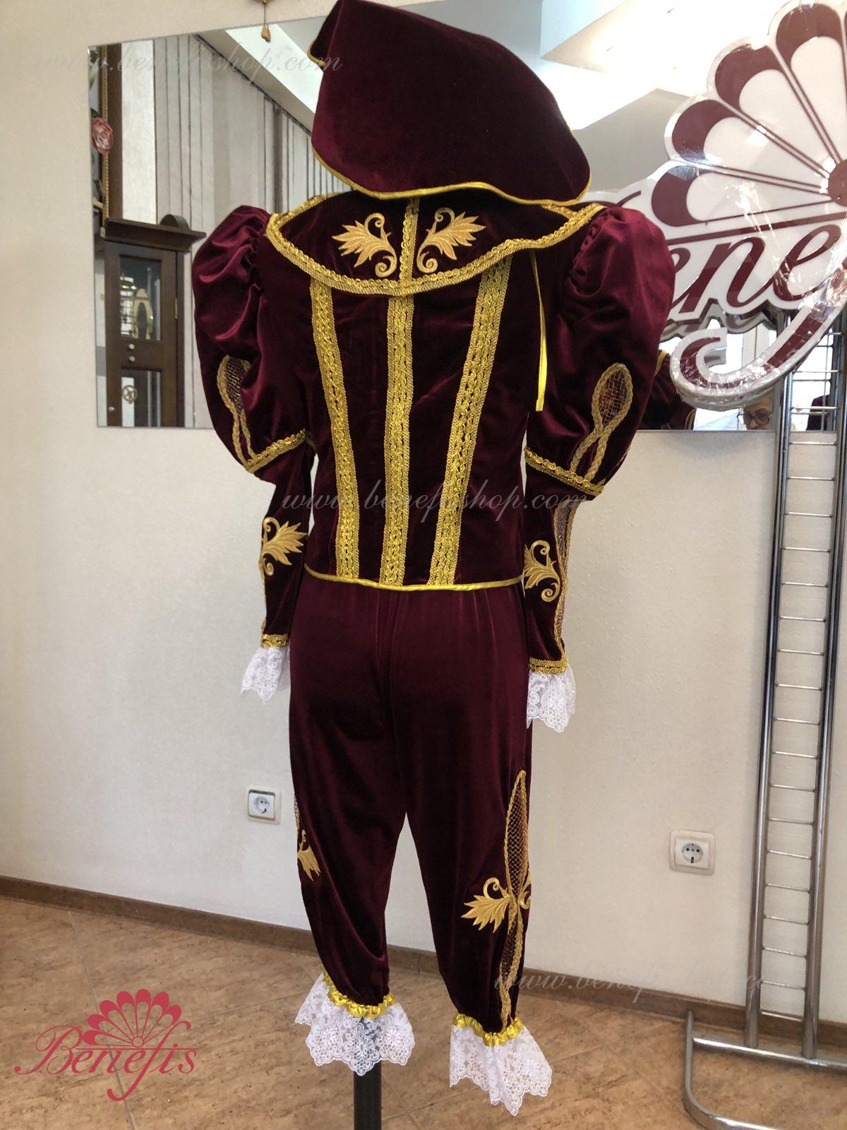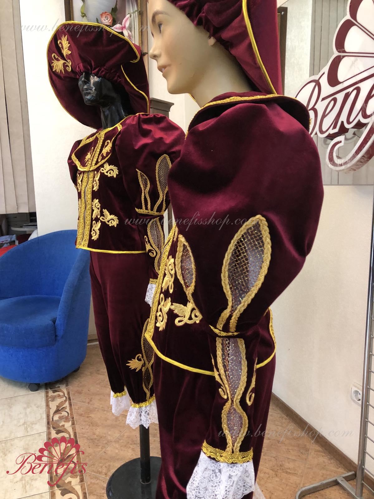 Costumul este confecționat din țesătură groasă. Jacheta este fixată cu fermoar în față. Întregul costum este bogat decorat cu panglică, aplicații, paiete și pietre. Inserții din plasă pe mâneci și părțile laterale ale pantalonilor. Gulerul este atașat la costum ca produs separat. Mânecile și picioarele sunt împodobite cu tul moale. Parura este făcută ca o beretă pe o bandă elastică.