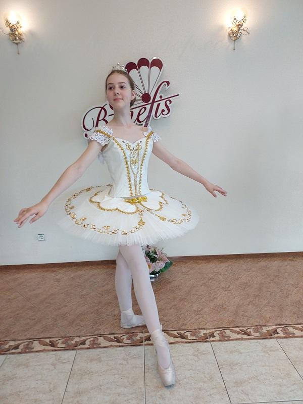 Acest costum poate fi utilizat in baletele “Sarbatoarea florilor in Cinzano ”, “Frumoasa Adormita” , numarul de concert Grand pas Classique.