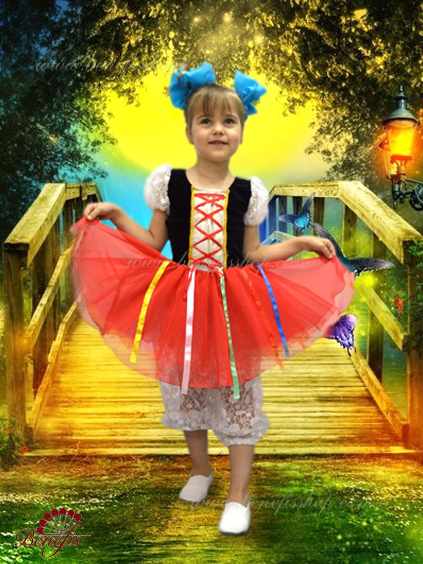 Detalii: rochie, pantaloni. Confectionat din catifea stretch, pantaloni din ghipura, fusta din tul.