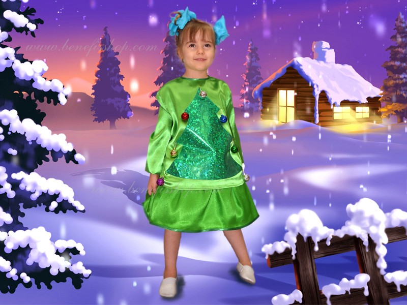 Detalii: rochie. Fabricat din satin. Decor: jucării de pom de Crăciun.
