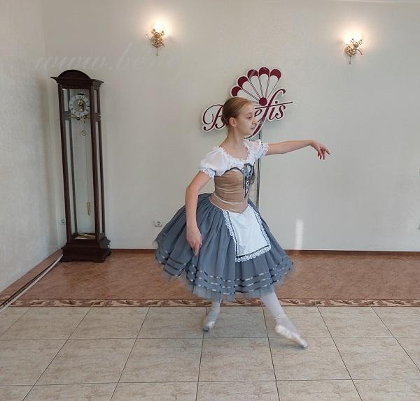 Acest costum de scena profesional este realizat pe baza fustei de balet profesionale romantice de baza #T0003 (vezi sectiunea Fuste de balet de baza).