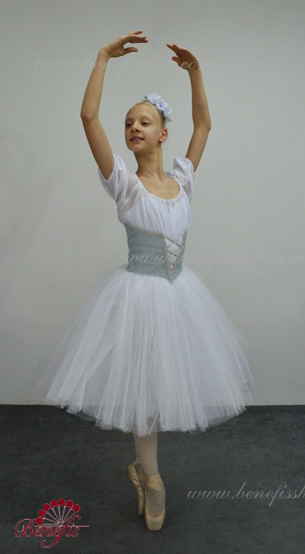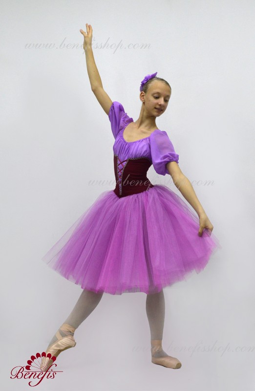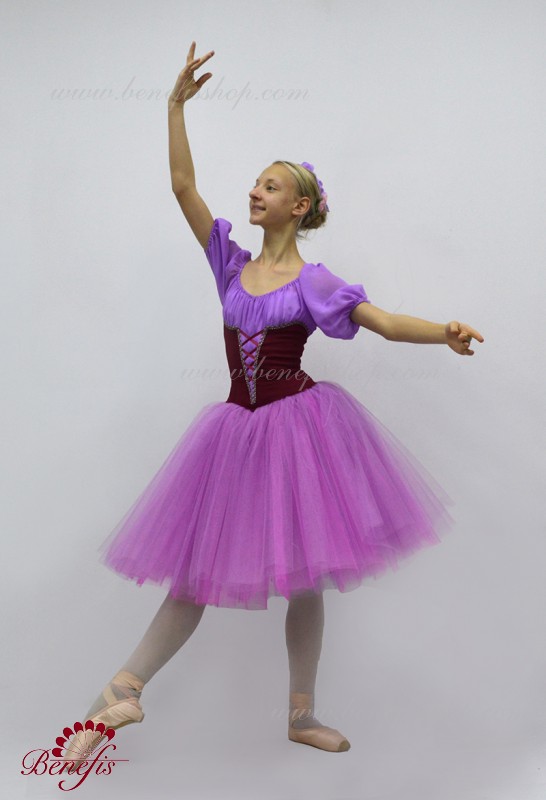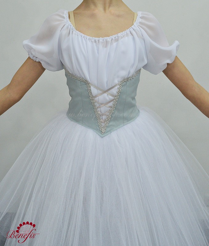 Costum profesionist de scena realizat in baza fustei de baza romantice T0003. Corsetul este confectionat din material semi-elastic de 2 culori cu dantela decorativa in partea din fata cu o trecere intr-o bluza lejera de sifon cu maneci – lanterna.
