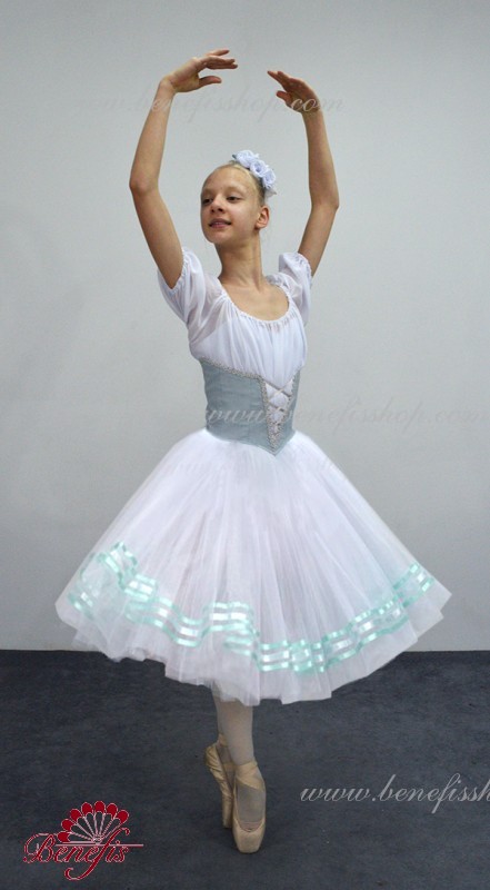 Costum profesionist de scena realizat in baza fustei de baza romantice T0003. Corsetul este confectionat din material semi-elastic de 2 culori cu dantela decorativa in partea din fata cu o trecere intr-o bluza lejera de sifon cu maneci – lanterna.