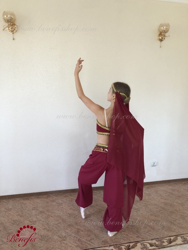 Corsetul este bogat împodobit cu împletitură aurie și brodat cu paiete, strasuri și mărgele. Pantalonii sunt fixați în spate cu două rânduri de cârlige . Costumul poate fi realizat in orice culoare la alegerea clientului.